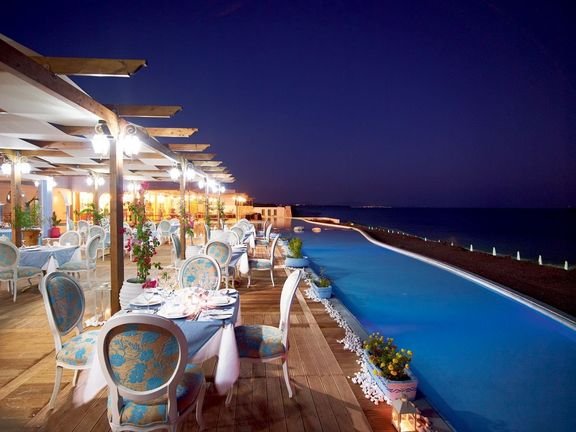 Ekskluzywny i nowoczesny – specjalnie dla wielbicieli luksusu. Pięknie zaprojektowany, położony nad brzegiem morza, urzeka wyjątkowym klimatem i międzynarodową atmosferą. Standard serwisu i obsługi to najwyższa światowa półka. Rewelacyjne pokoje wyposażone są we wszystkie wygody a piękne detale świadczą o wysokiej jakości wykończenia. Wyszukana kuchnia ze wszystkich stron świata to prawdziwy raj dla koneserów i smakoszy. Perełką hotelu jest świetnie zaprojektowany kompleks basenowy z tarasami, gdzie codziennie można oglądać niepowtarzalne zachody słońca. W jednym z basenów – wyspa z kapliczką na uroczystości ślubne.