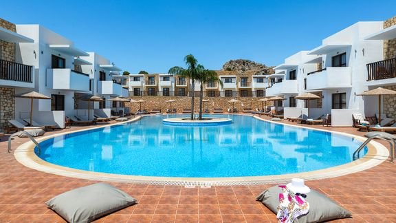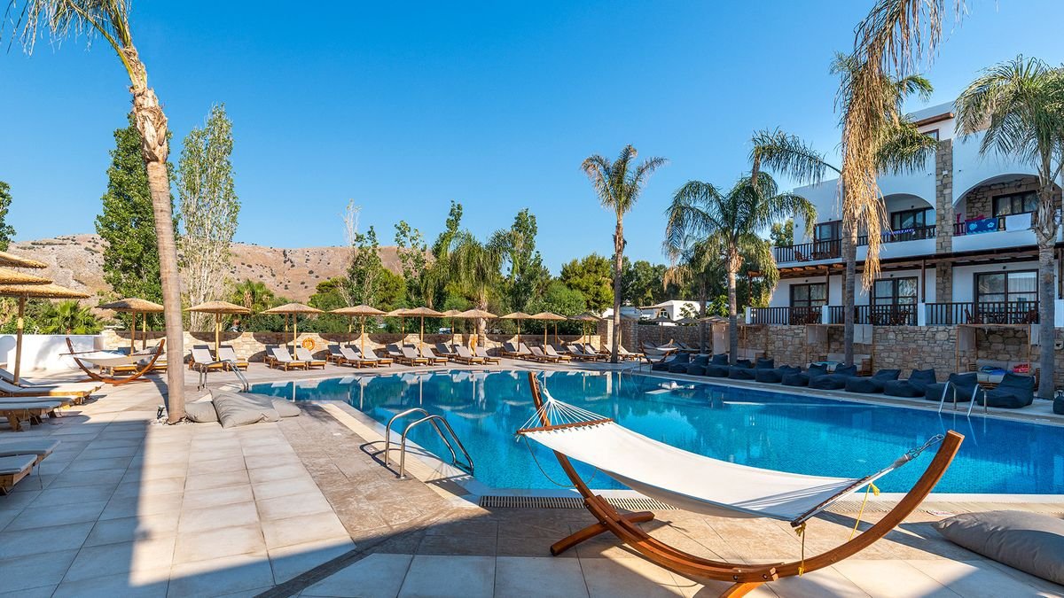 ok. 1,6 km od centrum LARDOS ze sklepami, barami i restauracjami, ok. 6 km od Lindos; ok. 60 km od lotniska w Rodos; przystanek autobusowy przy hotelu (ok. 5 EUR/Rodos).