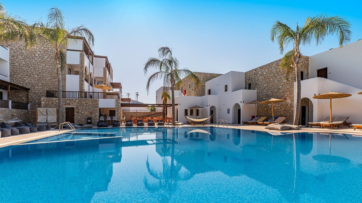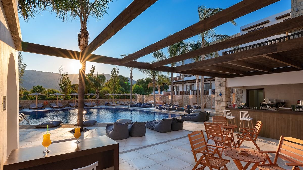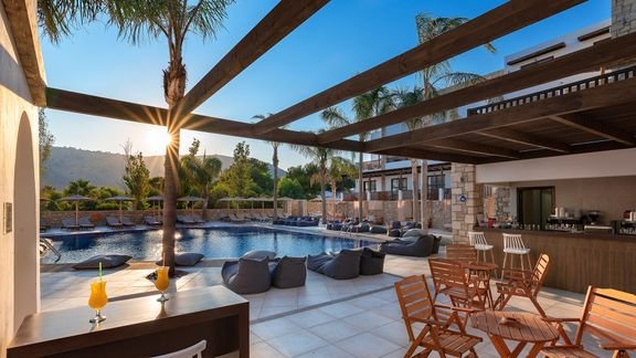 2 baseny: Delphinia, słodka woda, ok. 392 m², gł. 1,4 m, Aphrodite: słodka woda, 140 m², gł. 1,2-1,4 m, przy basenach bezpłatne parasole, leżaki, materace i hamaki; 2 jacuzzi, tenis stołowy, siatkówka plażowa, minipiłka nożna, billard (za opłatą); animacje rekreacyjno-sportowe, amfiteatr, centrum fitness; za opłatą: centrum wellness: basen kryty, sauna sucha i parowa, masaże; sporty wodne na plaży (oferta zewnętrzna).