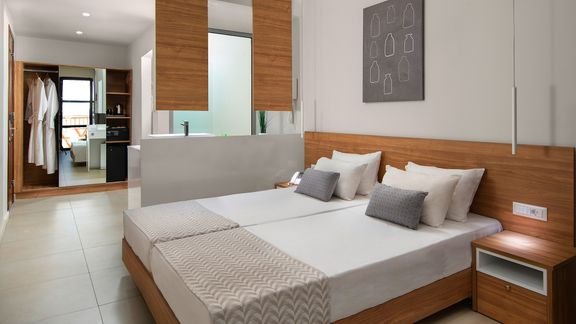 superior: 2-os. (możliwość 1 dostawki – rozkładana sofa), ok. 25-28 m², nowoczesny i elegancki, indywidualnie sterowana klimatyzacja, łazienka (prysznic, wc; suszarka, zestaw minikosmetyków, szlafrok, kapcie), internet bezprzewodowy, telewizja satelitarna, telefon, minibar (na powitanie: 2 napoje bezalkoholowe i 2 piwa, butelka wody), zestaw do kawy/herbaty, sejf (płatny); balkon lub taras (stolik i krzesełka), widok na ogród lub basen.