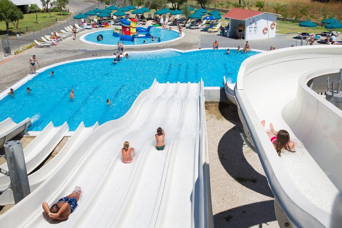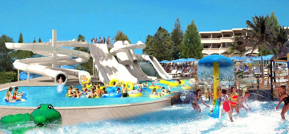 baseny, słodka woda: główny, nieregularny kształt, ok. 1200 m², z jacuzzi i wydzieloną częścią dla dzieci: ok. 20 m², 2 baseny: ok. 260 m² i ok. 115 m² z wydzielonymi częściami dla dzieci, basen dla dzieci, ok. 35 m², przy basenach bezpłatne parasole i leżaki; aquapark ze zjeżdżalniami (powyżej 6. roku życia), zjeżdżalnie dla dorosłych i dzieci; kort tenisowy z wypożyczalnią sprzętu, tenis stołowy, siłownia, sauna, jacuzzi, boisko wielofunkcyjne (minipiłka nożna, koszykówka, siatkówka), squash, boule, rzutki; plac zabaw dla dzieci, miniklub (4-12 lat), animacje dla dzieci i dorosłych, 2 razy w tygodniu muzyka na żywo, wieczory tematyczne, amfiteatr; za opłatą: sala gier, bilard (ok. 2 EUR/gra), oświetlenie kortu tenisowego.