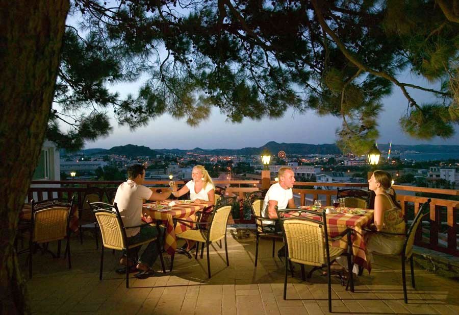 czterogwiazdkowy, na rozległym terenie, otoczony zielenią, zbudowany w 1985 r., całkowicie odnowiony w 2011 r., 356 pokoi, winda, budynek główny i kilkanaście jedno- i dwupiętrowych bungalowów, przestronne lobby, całodobowa recepcja, restauracja La Terrace z tarasem – kuchnia międzynarodowa, dania w formie bufetu, dostępne foteliki dla dzieci, do kolacji obowiązuje strój formalny (panowie – długie spodnie), snack bar w ogrodzie – dania w formie bufetu, kuchnia międzynarodowa i grecka, 3 bary: w lobby La Vista, przy basenie i bar typu swim-up Lagoon; kącik telewizyjny, przechowalnia bagażu, minimarket, sklepik z pamiątkami; bezpłatny internet bezprzewodowy w lobby; za opłatą: punkt internetowy (ok. 1 EUR/15 min); akceptowane karty kredytowe: Visa, MasterCard.