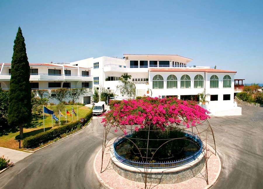 na wschodnim wybrzeżu wyspy Rodos, na niewielkim wzniesieniu, ok. 1,3 km od centrum FALIRAKI – popularnego kurortu z nocnym życiem, ok. 17 km od miasta Rodos; ok. 19 km od portu lotniczego na Rodos; przystanek autobusowy ok. 900 m od hotelu (Lindos/ok. 5 EUR).