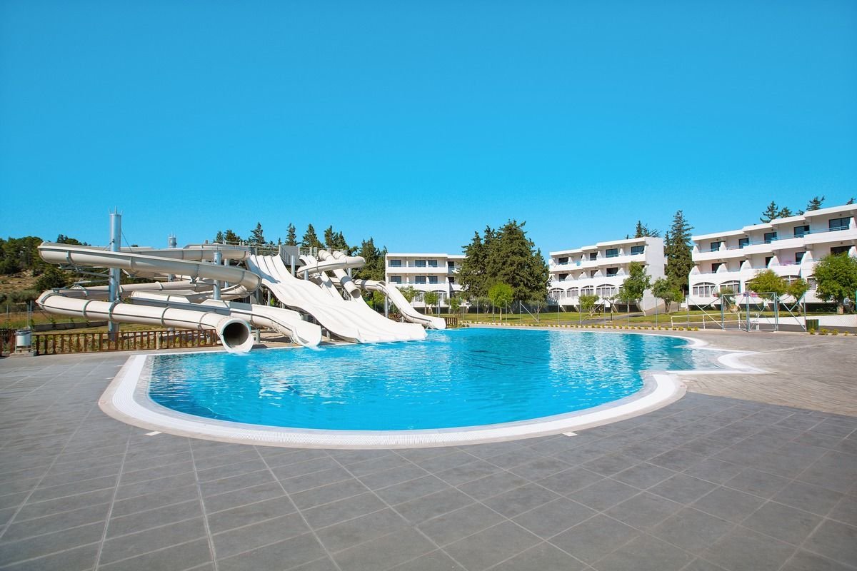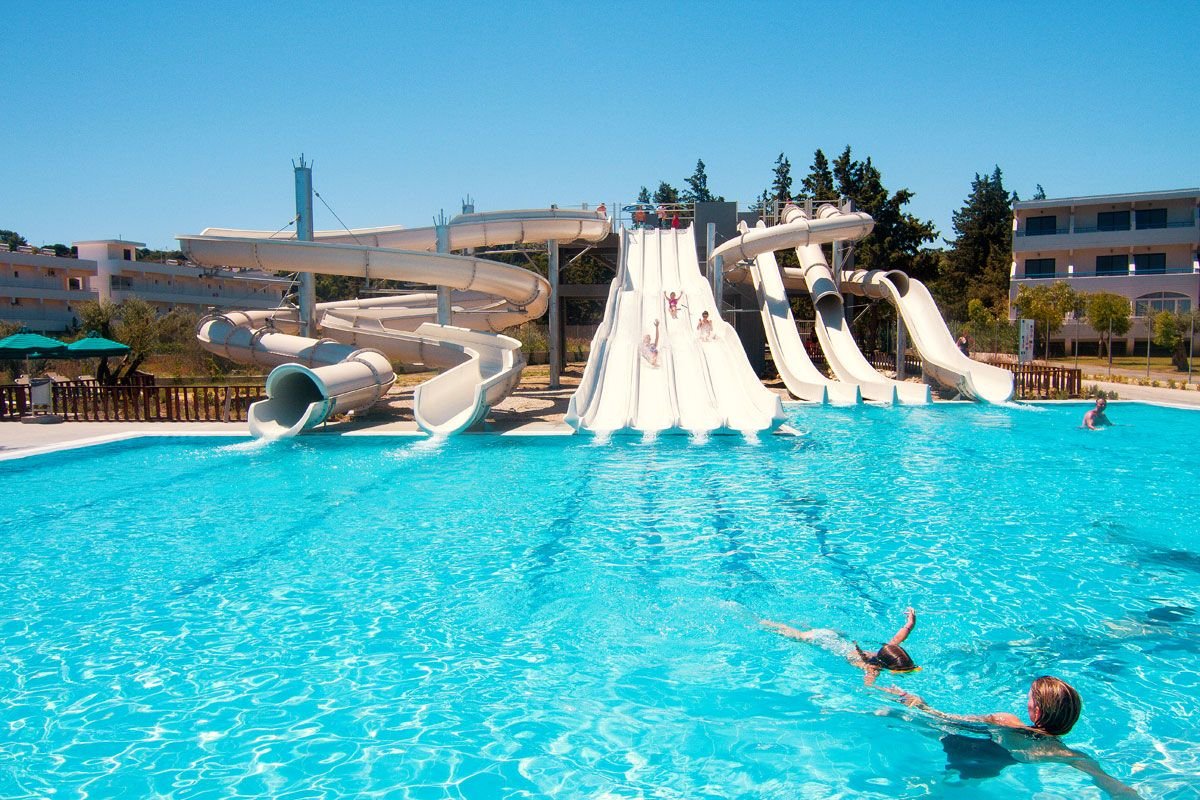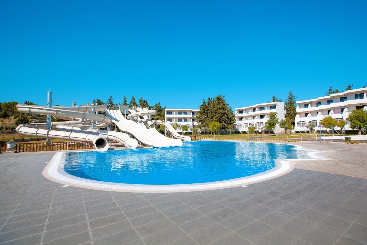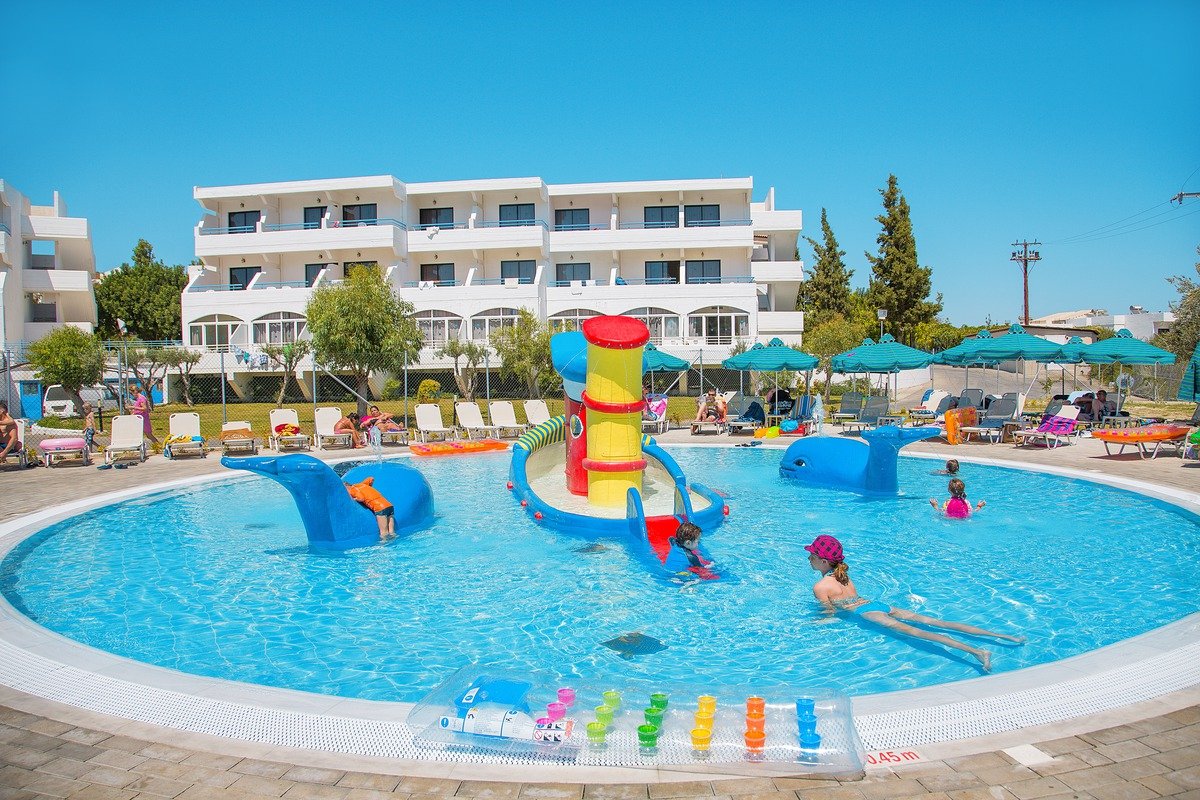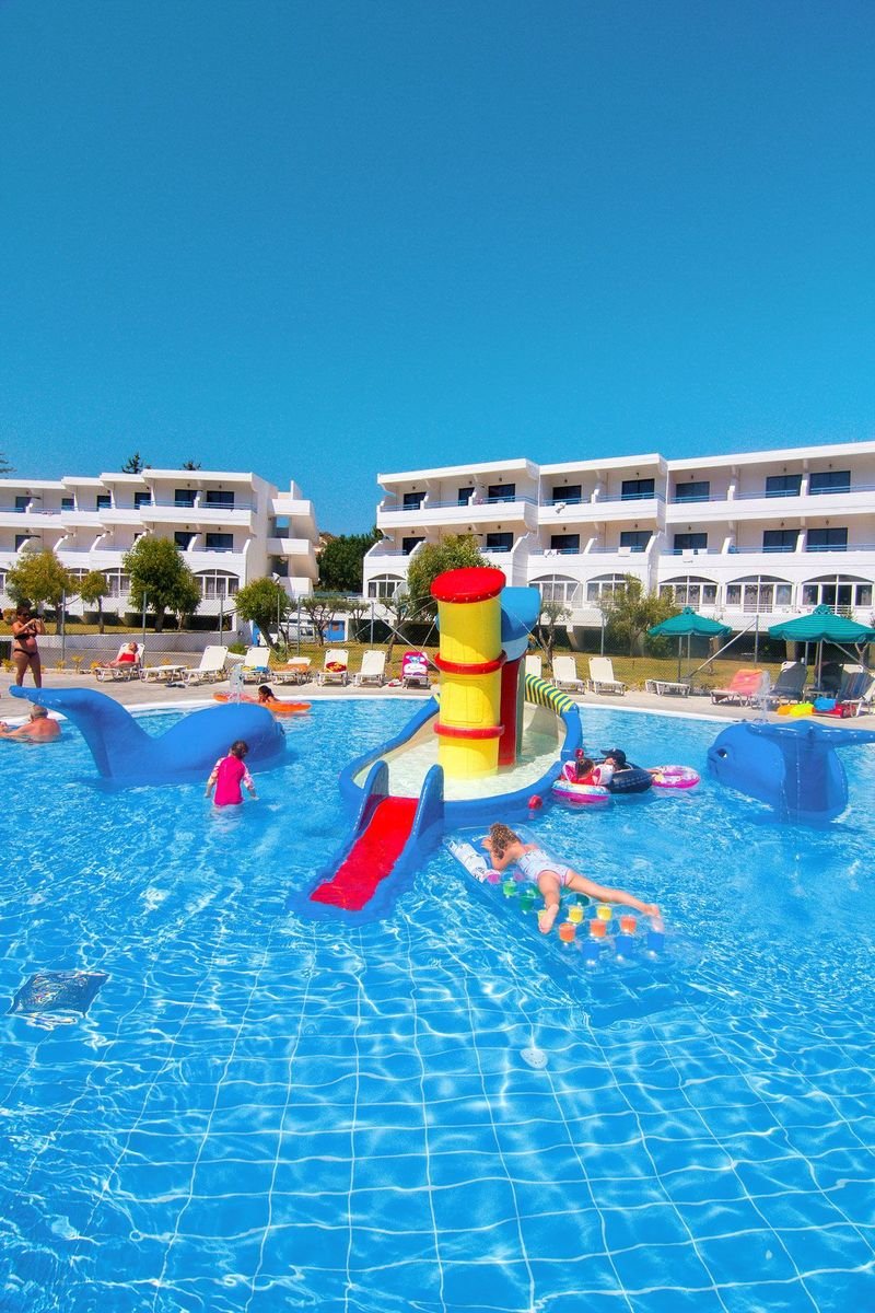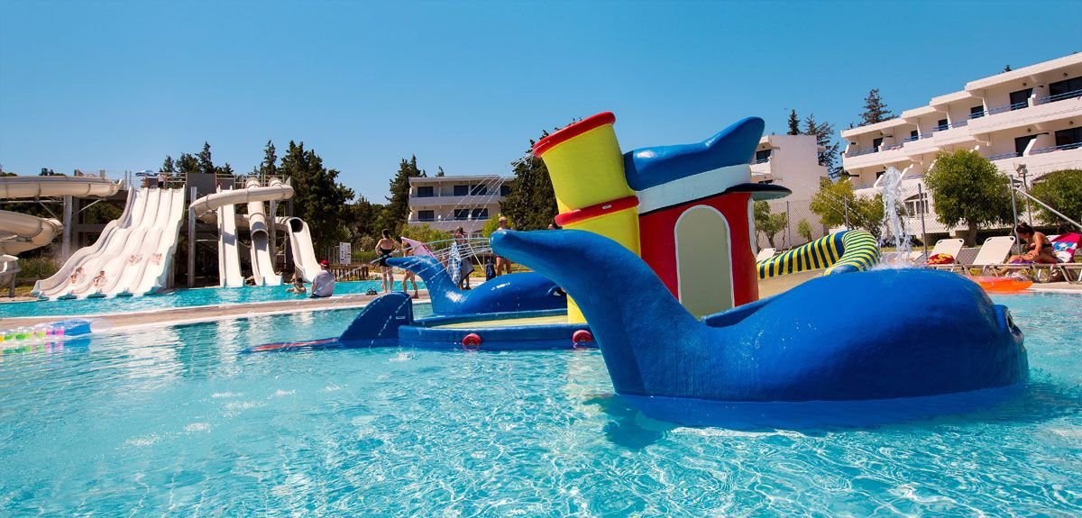 Świetne baseny i aquapark – to zdecydowanie polubią nie tylko dzieciaki! Hotel, położony na lekkim wzniesieniu, otoczony jest dużym, zadbanym ogrodem, gdzie cieszyć się można kilkoma basenami i aquaparkiem. Na Gości czeka sympatyczna i pomocna obsługa. Animacje i zajęcia sportowe to kolejne atrakcje dla całej rodziny. Do Faliraki, jednej z najbardziej rozrywkowych miejscowości na Rodos, jest tylko 1,3 km!