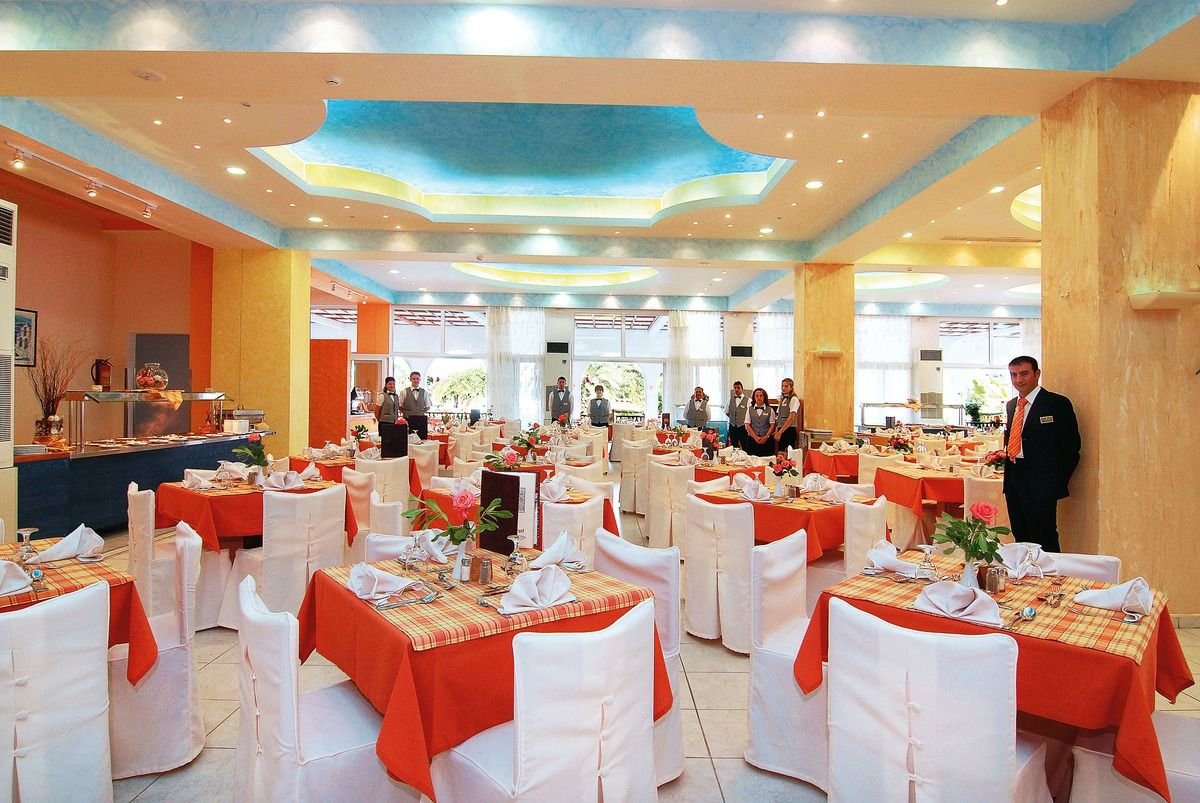 śniadanie (7.00-10.00), obiad (12.00-14.00), kolacja (18.30-21.30) w formie bufetu w restauracji; przekąski (11.00-12.00 i 15.30-16.30); lokalne napoje bezalkoholowe i alkoholowe (10.00 -23.00); bufet dla dzieci, lody (10.00-17.00); wymagane noszenie opasek all inclusive.