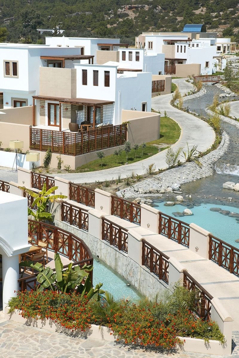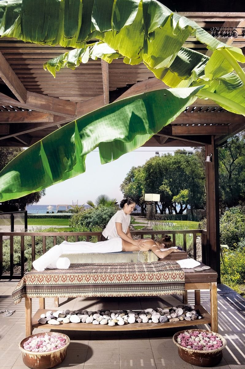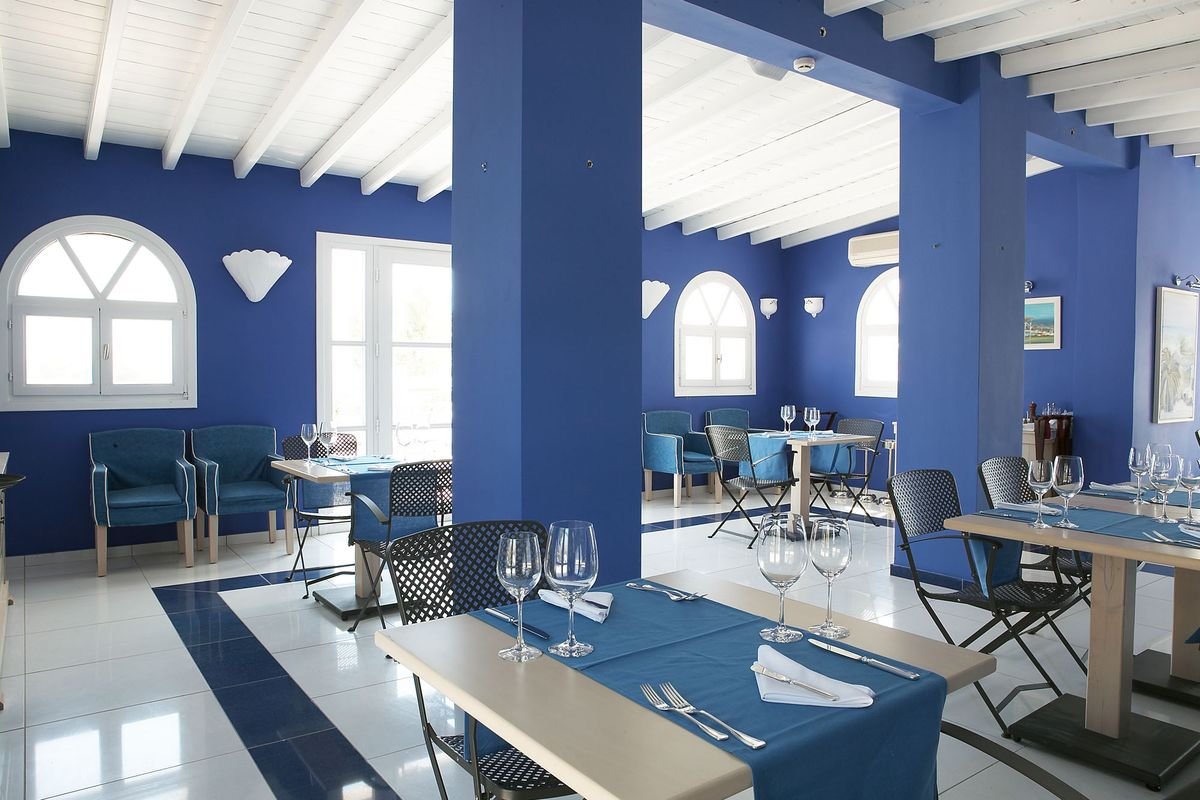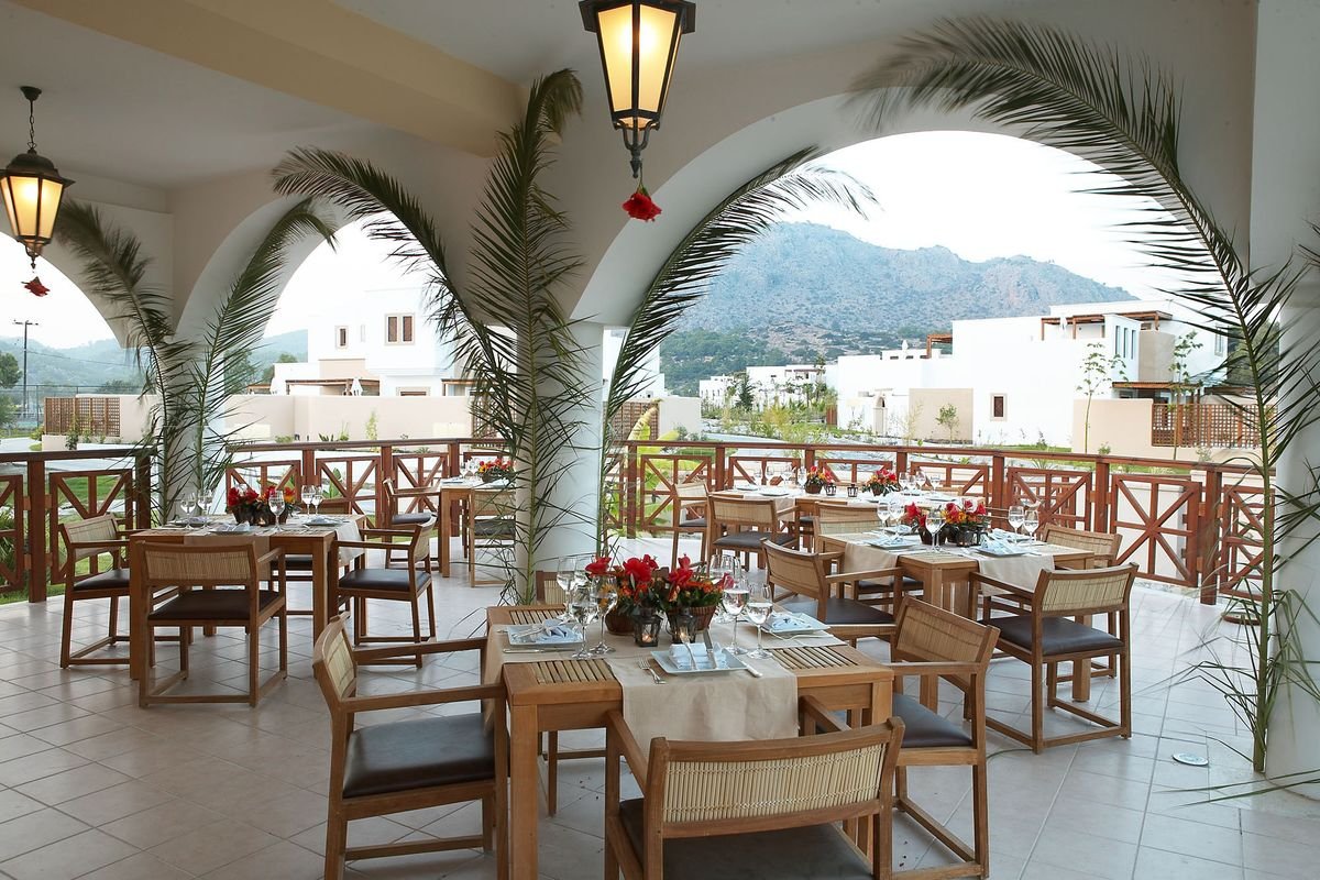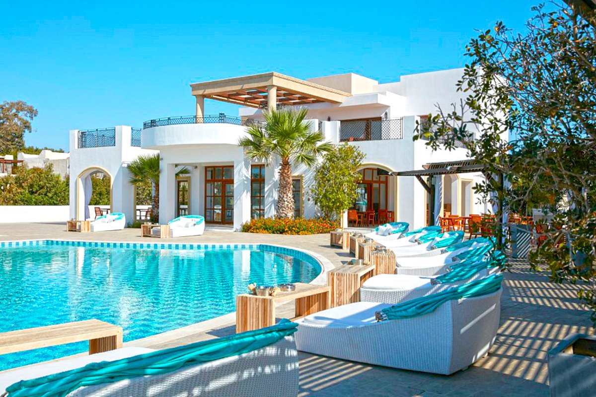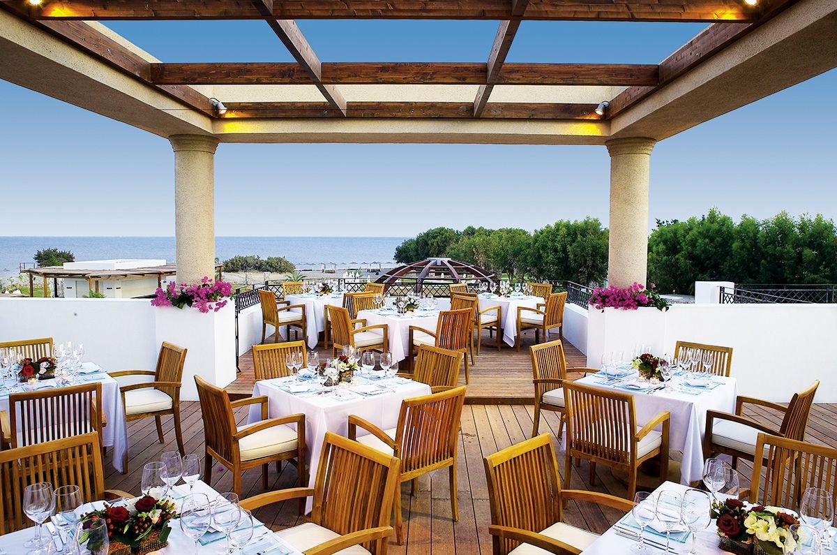 Hotel położony przy prywatnej, hotelowej, piaszczysto-żwirkowej plaży z darmowym serwisem, pośród ogrodu z śródziemnomorską roślinnością. Zbudowany w formie tradycyjnej greckiej wioski, urzeka bielą i błękitem, kolorami charakterystycznymi i kojarzonymi z tym krajem. Pięć znakomitych restauracji serwuje duży wybór dań, od kuchni greckiej i śródziemnomorskiej, przez doskonałe owoce morza, aż po pełne aromatów specjały kuchni włoskiej. Do dyspozycji Gości są dwa baseny oraz basen dla dzieci, świetne zaplecze sportowe i centrum spa z mnóstwem zabiegów upiększających i relaksujących.