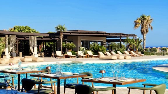 Hotel położony przy prywatnej, hotelowej, piaszczysto-żwirowej plaży z darmowym serwisem, pośród ogrodu z śródziemnomorską roślinnością. Na miejscu kilka znakomitych restauracji serwuje duży wybór dań, od kuchni śródziemnomorskiej, przez doskonałe owoce morza po pełne aromatów i egzotycznych smaków potrawy kuchni tajskiej i azjatyckiej. Do dyspozycji Gości są 2 baseny oraz basen dla dzieci, świetne zaplecze sportowe i centrum Spa z mnóstwem zabiegów upiększających i relaksujących.