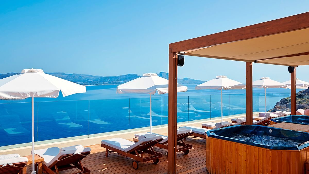 Luksusowy hotel położony na wzgórzu, skąd rozciąga się przepiękny widok na zatokę Vlicha, góry oraz Morze Śródziemne. Baseny infinity, spa oferujące liczne zabiegi i masaże oraz kameralna, spokojna atmosfera sprawiają, że jest to miejsce stworzone do relaksu i odpoczynku. Hotel oferuje nowoczesne wnętrza, miłą, sympatyczną i pomocną obsługę. Restauracja Five Senses wyróżniana jest za wspaniałą kuchnię kreatywnie łącząca w sobie wpływy greckie i śródziemnomorskie, a na przestronnym tarasie można zjeść kolację patrząc na rozgwieżdżone niebo. W bliskiej odległości znajduje się antyczne miasteczko Lindos. Idealne miejsce na romantyczne wakacje we dwoje. Hotel przyjmuje Gości powyżej 17. roku życia.