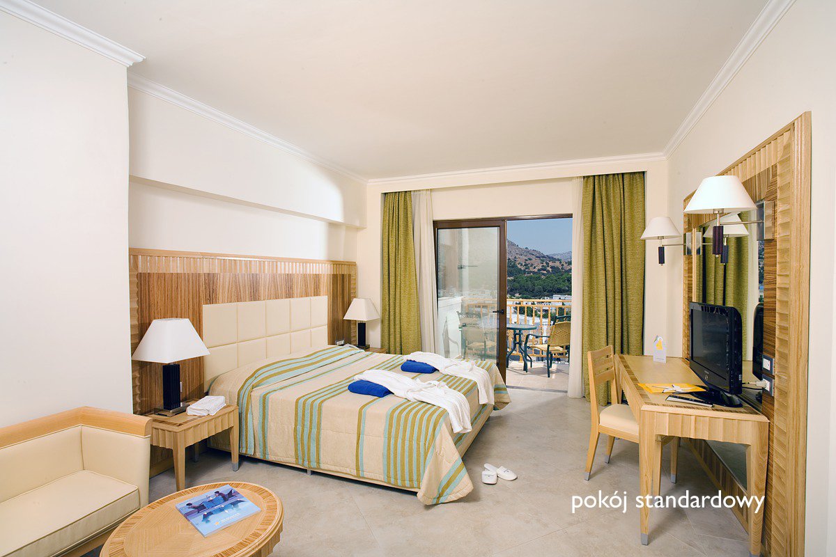 standardowy: 2-os. (możliwość 1 dostawki), ok. 27 m², nowoczesny, klimatyzowany, łazienka (wanna, wc; suszarka), telewizja satelitarna, polski program, telefon, mini-lodówka, sejf; bezpłatne łóżeczko dla dziecka do 2 lat na zamówienie przed przyjazdem; balkon (stolik i krzesełka), widok na ogród lub basen; widok na morze za dopłatą; rodzinny: 3-os. (możliwość 1 dostawki), ok. 30 m², jedno pomieszczenie, wyposażenie jak w pokoju standardowym; pokój rodzinny na zamówienie, za dopłatą; superior rodzinny: 3-os. (możliwość 1 dostawki), ok. 33 m², wyposażenie jak w pokoju rodzinnym, dodatkowo: pokój dzienny oddzielony przesuwnymi drzwiami; pokój superior rodzinny na zapytanie, za dopłatą.