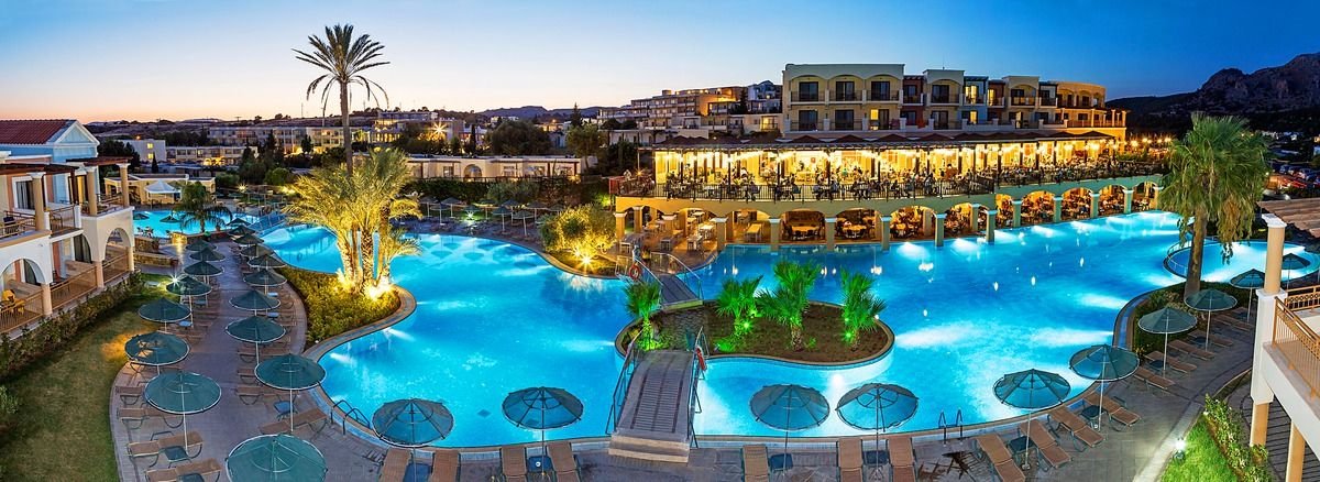 Luksusowe wakacyjne imperium położone tarasowo na wzgórzu z pięknym widokiem na morze. Zadbane w każdym calu, zachwyca otoczonym ogrodem kompleksem basenów z mostkami i zjeżdżalniami oraz pięknym tarasem, na którym można nie tylko podziwiać krajobrazy, ale również sączyć drinka. Pozytywne opinie zawdzięcza również profesjonalnemu serwisowi i świetnym pokojom, które bez problemu pomieszczą nawet większą rodzinę. Dumą hotelu jest bogate zaplecze kulinarne – restauracje tematyczne kuszą zapachami i smakami z całego świata. Blisko stąd do plaży, w odległości spaceru znajduje się również centrum ze sklepami i lokalnymi tawernami. W 2016 r. hotel otrzymał ŻAGIEL ITAKI za najwyższą jakość świadczonych usług.