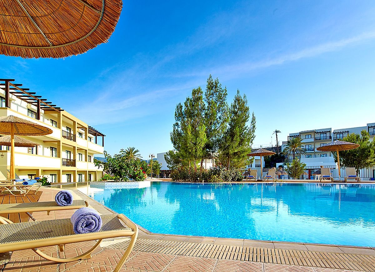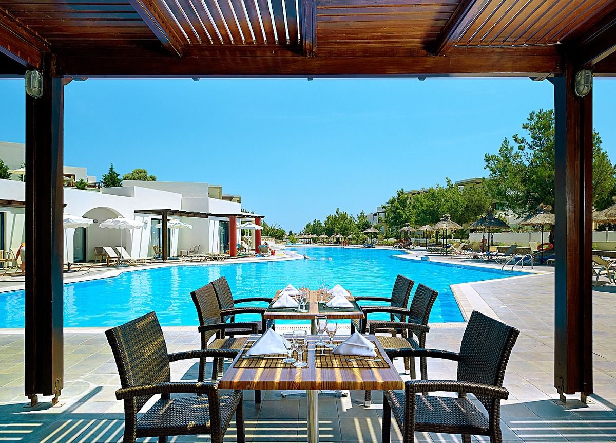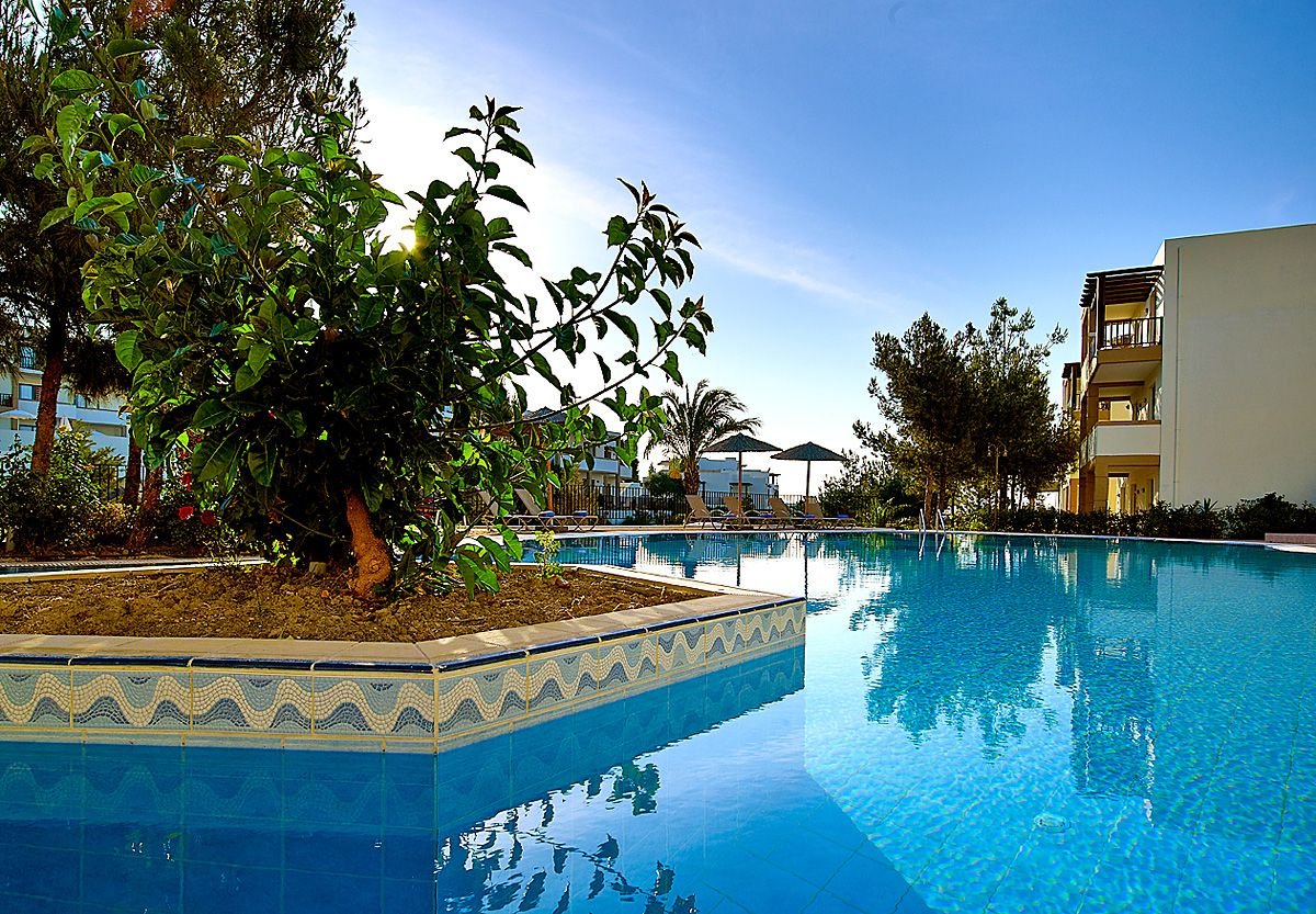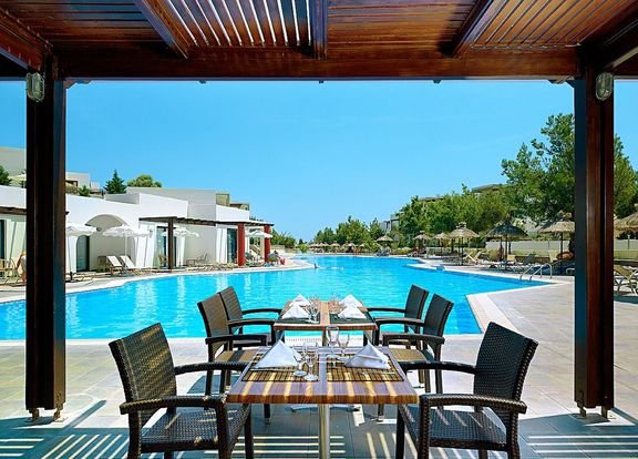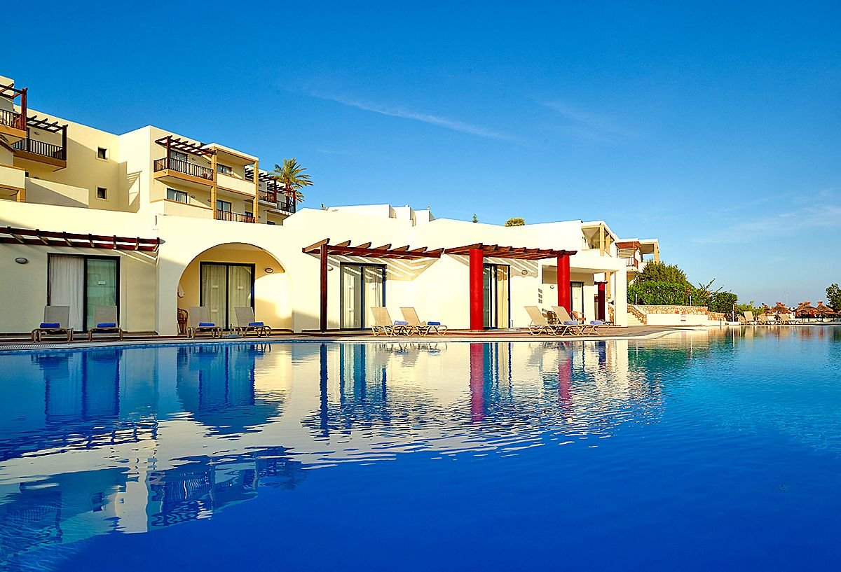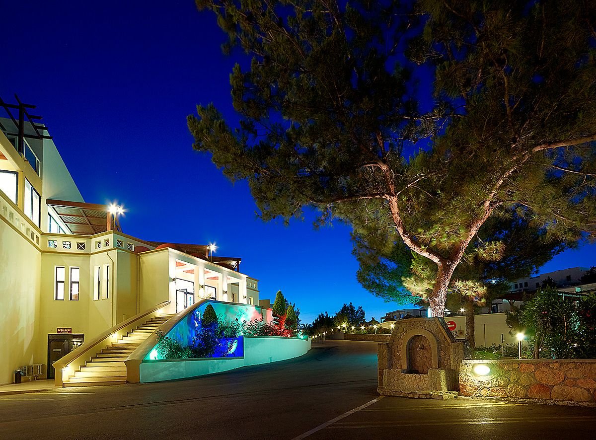 pięciogwiazdkowy, nowoczesny, zbudowany w 2007 r., częściowo odnowiony w 2012 r., 179 pokoi, 9 budynków (budynek główny i bungalowy), 2 piętra, 4 windy, eleganckie, przestronne lobby, całodobowa recepcja, restauracja główna z widokiem na morze – dania w formie bufetu, kuchnia międzynarodowa i grecka, dostępne foteliki dla dzieci, dania wegetariańskie, dieta bezglutenowa (na zamówienie przed przyjazdem), podczas kolacji obowiązuje strój formalny (panowie – długie spodnie), 2 restauracja à la carte, obsługa kelnerska; w restauracjach dostępne foteliki i menu dla dzieci, dania wegetariańskie, 5 barów: Tawerna przy basenie głównym, snack bar przy basenie dla dzieci, bar w lobby, bar na plaży, bar w dyskotece; minimarket, sklep z pamiątkami; centrum konferencyjne dla 200 osób, taras z panoramą na ogród i basen, duży, śródziemnomorski ogród; za opłatą: internet bezprzewodowy (karta: ok. 4 EUR/ 60 min, ok. 15 EUR/4 godz., ok. 40 EUR/tydz.), punkt internetowy (karta: ok. 4 EUR/60 min, ok. 15 EUR/4 godz., ok. 40 EUR/tydz.), opiekunka do dziecka (na zamówienie); występują różnice poziomów – nie polecany osobom z ograniczeniami ruchowymi; akceptowane karty kredytowe: Visa, MasterCard, American Express.