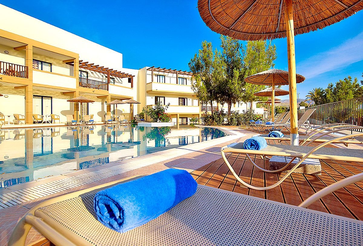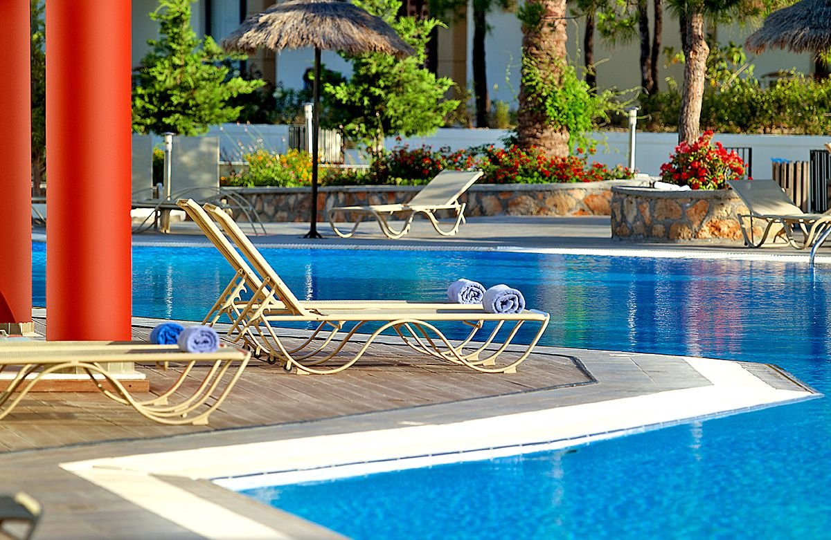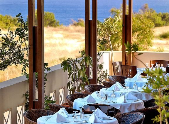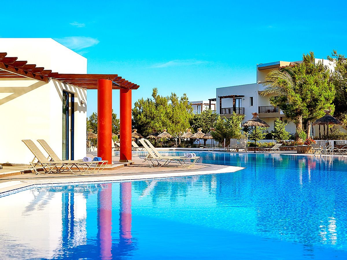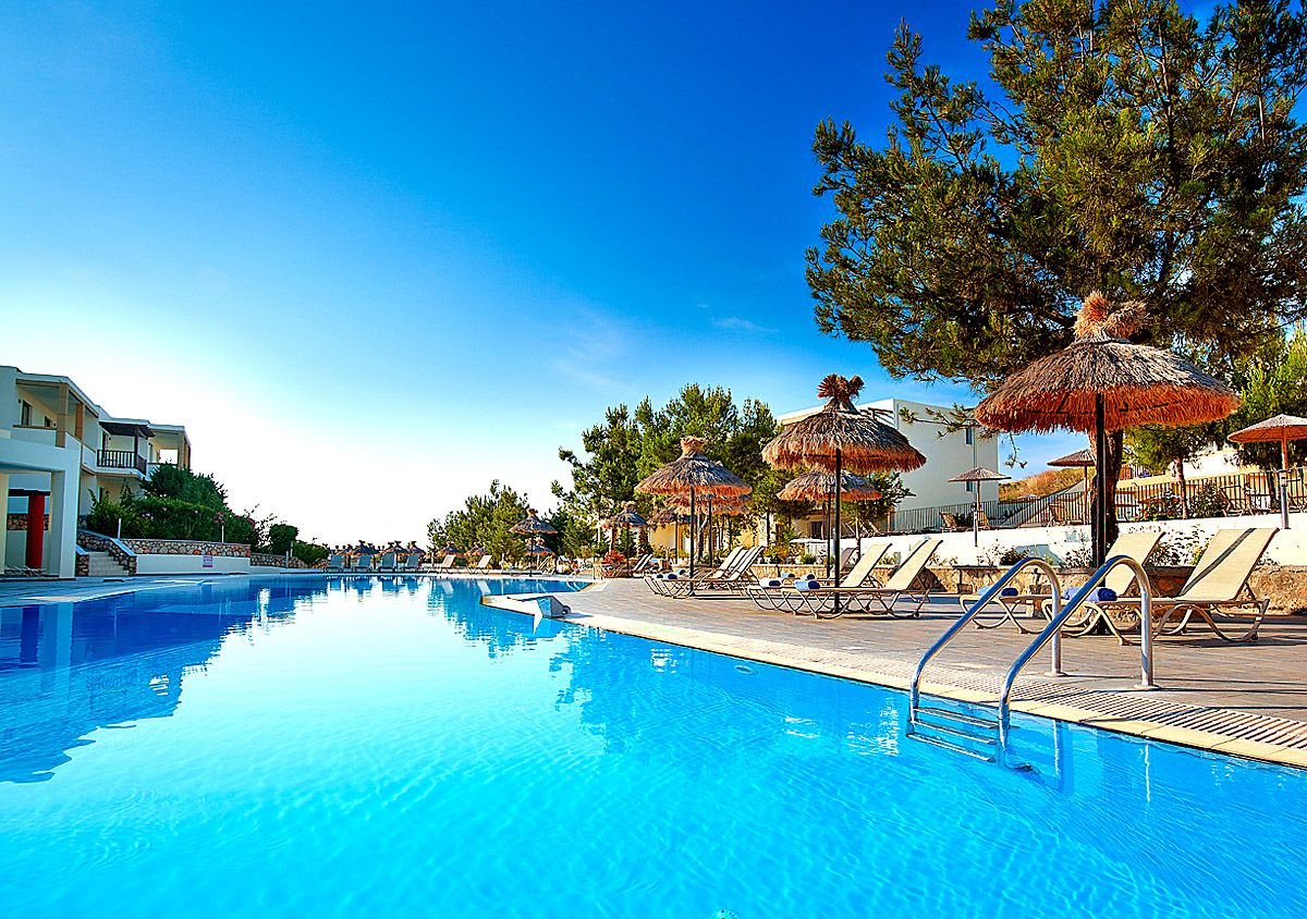pięciogwiazdkowy, nowoczesny, zbudowany w 2007 r., częściowo odnowiony w 2012 r., 179 pokoi, 9 budynków (budynek główny i bungalowy), 2 piętra, 4 windy, eleganckie, przestronne lobby, całodobowa recepcja, restauracja główna z widokiem na morze – dania w formie bufetu, kuchnia międzynarodowa i grecka, dostępne foteliki dla dzieci, dania wegetariańskie, dieta bezglutenowa (na zamówienie przed przyjazdem), podczas kolacji obowiązuje strój formalny (panowie – długie spodnie), 2 restauracja à la carte, obsługa kelnerska; w restauracjach dostępne foteliki i menu dla dzieci, dania wegetariańskie, 5 barów: Tawerna przy basenie głównym, snack bar przy basenie dla dzieci, bar w lobby, bar na plaży, bar w dyskotece; minimarket, sklep z pamiątkami; centrum konferencyjne dla 200 osób, taras z panoramą na ogród i basen, duży, śródziemnomorski ogród; za opłatą: internet bezprzewodowy (karta: ok. 4 EUR/ 60 min, ok. 15 EUR/4 godz., ok. 40 EUR/tydz.), punkt internetowy (karta: ok. 4 EUR/60 min, ok. 15 EUR/4 godz., ok. 40 EUR/tydz.), opiekunka do dziecka (na zamówienie); występują różnice poziomów – nie polecany osobom z ograniczeniami ruchowymi; akceptowane karty kredytowe: Visa, MasterCard, American Express.
