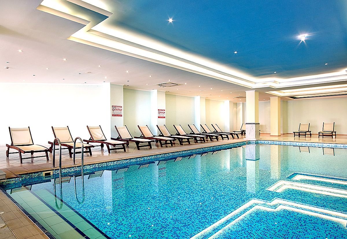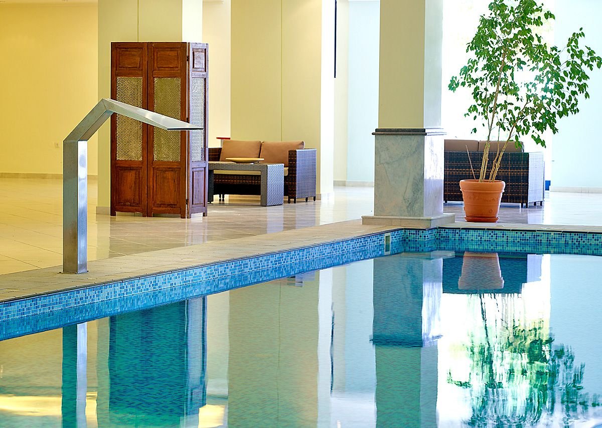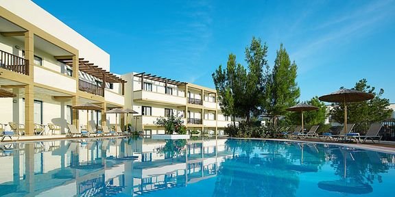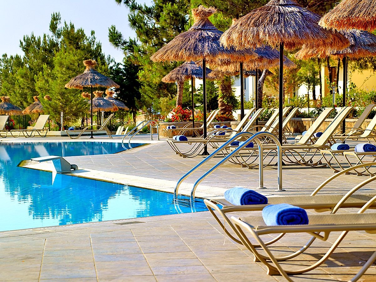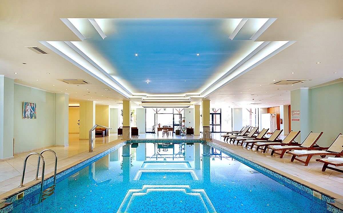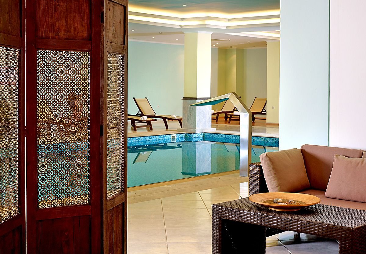 pięciogwiazdkowy, nowoczesny, zbudowany w 2007 r., częściowo odnowiony w 2012 r., 179 pokoi, 9 budynków (budynek główny i bungalowy), 2 piętra, 4 windy, eleganckie, przestronne lobby, całodobowa recepcja, restauracja główna z widokiem na morze – dania w formie bufetu, kuchnia międzynarodowa i grecka, dostępne foteliki dla dzieci, dania wegetariańskie, dieta bezglutenowa (na zamówienie przed przyjazdem), podczas kolacji obowiązuje strój formalny (panowie – długie spodnie), 2 restauracja à la carte, obsługa kelnerska; w restauracjach dostępne foteliki i menu dla dzieci, dania wegetariańskie, 5 barów: Tawerna przy basenie głównym, snack bar przy basenie dla dzieci, bar w lobby, bar na plaży, bar w dyskotece; minimarket, sklep z pamiątkami; centrum konferencyjne dla 200 osób, taras z panoramą na ogród i basen, duży, śródziemnomorski ogród; za opłatą: internet bezprzewodowy (karta: ok. 4 EUR/ 60 min, ok. 15 EUR/4 godz., ok. 40 EUR/tydz.), punkt internetowy (karta: ok. 4 EUR/60 min, ok. 15 EUR/4 godz., ok. 40 EUR/tydz.), opiekunka do dziecka (na zamówienie); występują różnice poziomów – nie polecany osobom z ograniczeniami ruchowymi; akceptowane karty kredytowe: Visa, MasterCard, American Express.