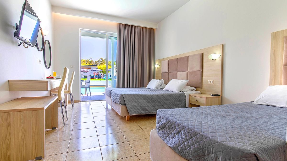 Niedaleko piaszczystej plaży czeka miejsce, do którego wielu Gości wraca rok po roku. W kilka minut spacerem dotrzesz do lokalnych tawern, barów i sklepów z regionalnymi przysmakami, a na spacer świetnie sprawdzą się okoliczne ścieżki, skąd malują się krajobrazy gór i morza. Po dniu pełnym słońca możesz zrelaksować się przy basenie, w czasie gdy dzieciaki miło spędzą czas w strefie przygotowanej specjalnie dla nich. Komfortowe pokoje zapewniają wygodę i przestrzeń na odpoczynek, a serdeczna, pomocna obsługa tworzy naprawdę przyjazną atmosferę. To udane połączenie świetnej lokalizacji, rodzinnego klimatu i wakacyjnego luzu.