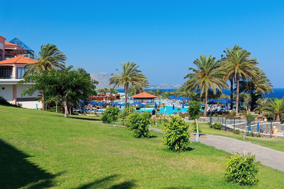 czterogwiazdkowy, elegancki, zbudowany w 1993 r., odnowiony w 2007 r. (budynek główny) i 2011 r. (30 pokoi rodzinnych), 356 pokoi, 2 piętra, 6 wind, przestronne i eleganckie lobby, całodobowa recepcja, 3 restauracje – dania w formie bufetu: Dionizos – dodatkowo obsługa kelnerska, kuchnia grecka i międzynarodowa, 3 kolacje tematyczne w ciągu tygodnia, Venus przy basenie – dodatkowo à la carte, kącik dla dzieci podczas obiadu, Diogenis przy plaży; w restauracjach dostępne foteliki dla dzieci, dania wegetariańskie, bary Apollo, Neptun przy basenie, Galanteria (lodziarnia) przy basenie, minimarket, jubiler; centrum konferencyjne dla 200 osób, taras z widokiem na morze, ogród; za opłatą: internet bezprzewodowy i punkt internetowy (ok. 4 EUR/godz.), opiekunka do dziecka (na życzenie), fryzjer; akceptowane karty kredytowe: Visa, MasterCard, American Express, Diners Club.