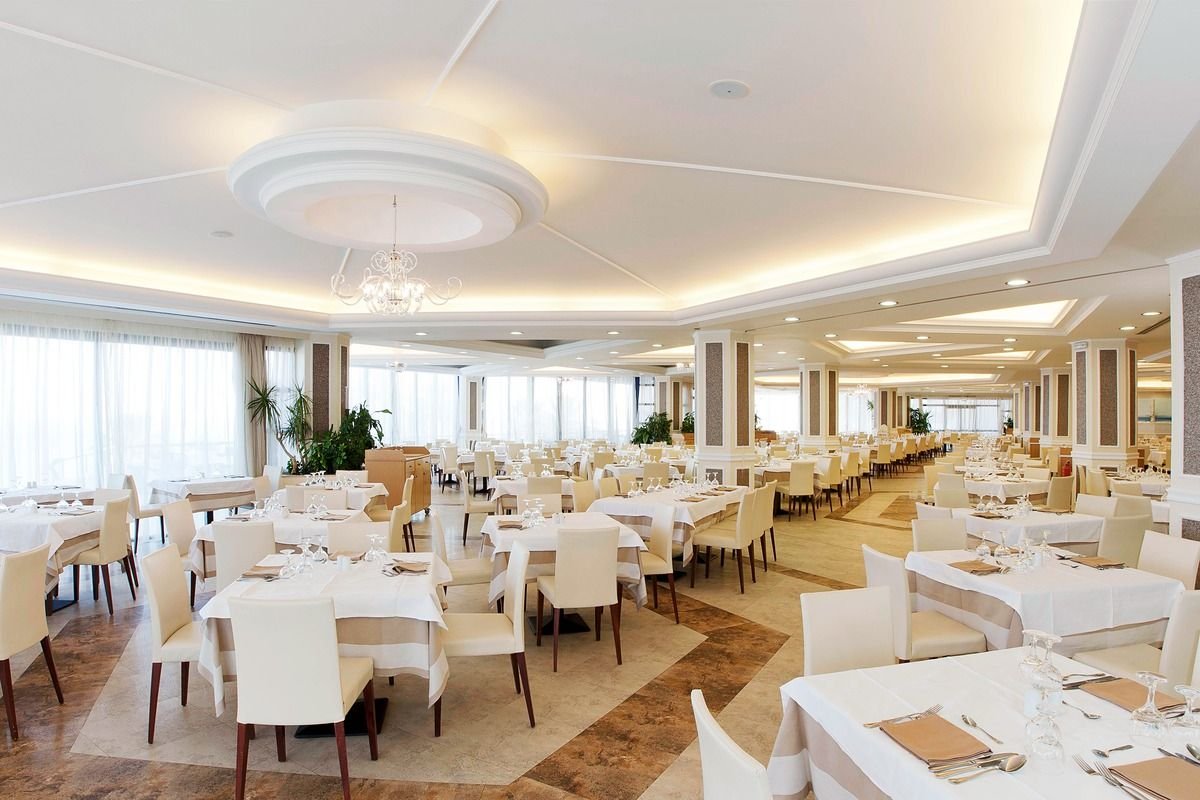śniadanie (7.00-10.00), późne śniadanie (10.00-11.00), obiad (12.30-14.30), kolacja (18.30-21.30) w formie bufetu w restauracji Dionisos; obiad (13.00-15.00), kolacja (18.00-22.00) w restauracji Venus (wymagana wcześniejsza rezerwacja), przekąski (10.00-13.00, 15.00-19.00, 22.00-23.45); napoje bezalkoholowe i lokalne napoje alkoholowe w wyznaczonych barach (07.00-24.00); wymagane noszenie opasek all inclusive.