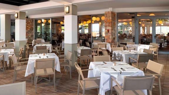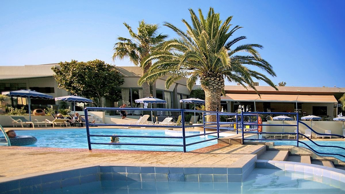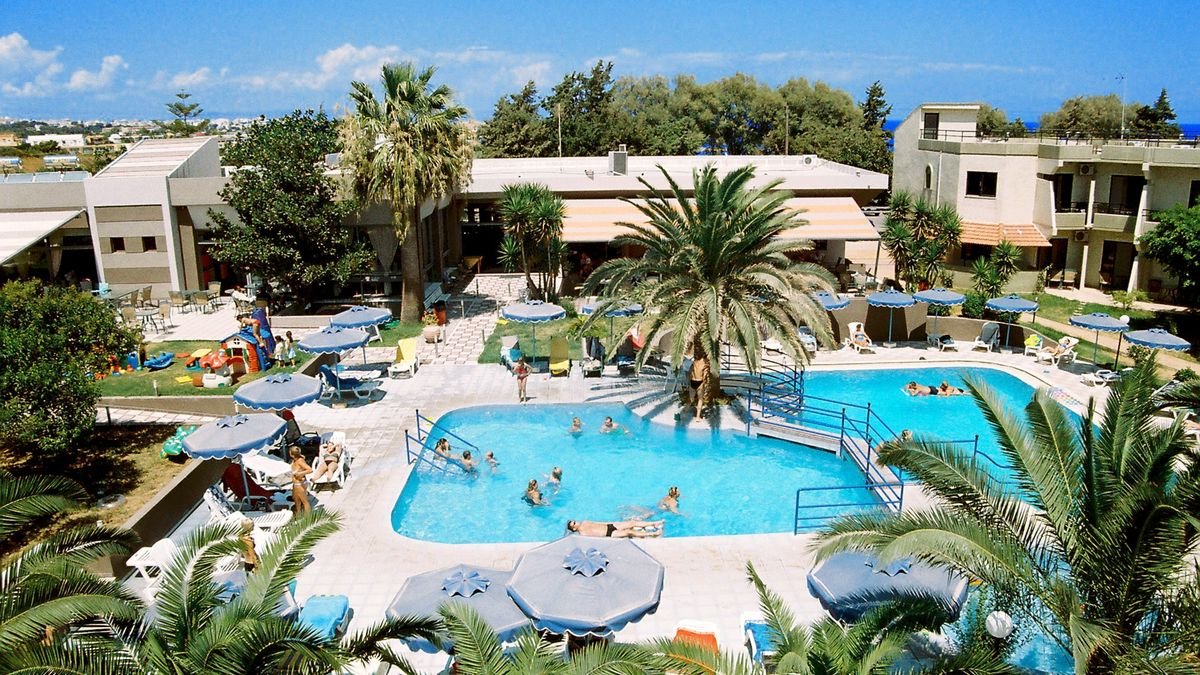 czterogwiazdkowy, zbudowany w 1986 r., częściowo odnowiony w 2018 r., 286 pokoi, 7 budynków w zabudowie szeregowej, 3 piętra, winda, eleganckie i przestronne lobby, całodobowa recepcja, restauracja główna Dionysos – dania w formie bufetu, kuchnia międzynarodowa, wieczory tematyczne, w restauracji dostępne foteliki i menu dla dzieci, dania wegetariańskie (na zapytanie), 2 restauracje à la carte na tarasie z widokiem na basen: Ambrosia – kuchnia grecka, Nemesis – kuchnia śródziemnomorska, dania rybne, 3 bary: snack bar, w lobby i przy basenie; punkt wymiany walut, minimarket, parking; sala konferencyjna dla maks. 300 osób, ogród, taras z widokiem na basen, bezpłatny internet bezprzewodowy w miejscach ogólnodostępnych; za opłatą: usługa prania, lekarz na wezwanie, sejf w recepcji, wypożyczalnia samochodów i rowerów; na terenie hotelu występują różnice poziomów – nie jest polecany osobom z ograniczeniami ruchowymi; akceptowane karty kredytowe: Visa, MasterCard.