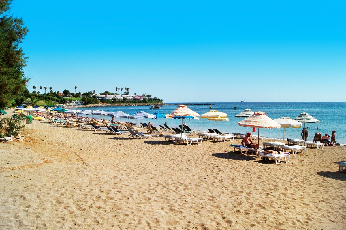 Sunwing Beach, publiczna, piaszczysto-żwirkowa, łagodne zejście do morza, ok. 150 m od hotelu, strome zejście w dół, parasole, leżaki i materace płatne.