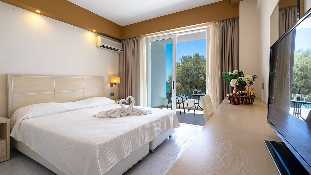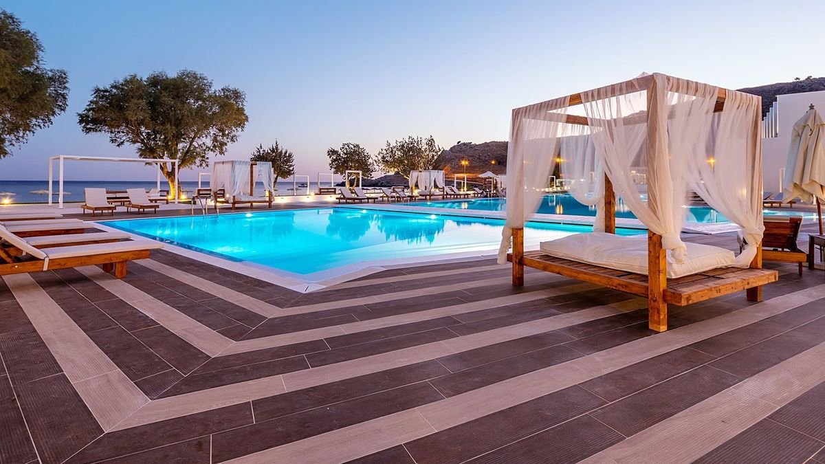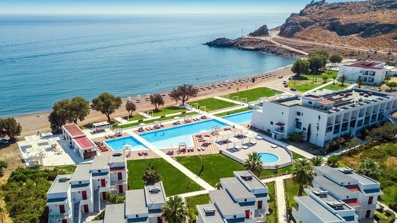 Idealne miejsce dla wielbicieli malowniczych widoków, ciepła i prawdziwego greckiego klimatu! Położony tuż przy plaży, w otoczeniu ogrodu, błękitnego morza i majestatycznych wzgórz, oferuje doskonałe warunki do spokojnego wypoczynku. Zrelaksuj się w basenie podziwiając kołyszące się w oddali fale, odpocznij na leżaku ze schłodzonym drinkiem w dłoni i zapomnij o wszelkich troskach. Czekają tu na Ciebie komfortowe pokoje, w tym z widokiem na morze, a także 3 restauracje z kuchnią włoską, grecką i śródziemnomorską. Podczas pobytu koniecznie zaplanuj czas na odkrywanie uroków okolicy – niedaleko stąd do miejscowości Lardos pełnej klimatycznych tawern, a nieco dalej znajdziesz urokliwą wioskę Lindos wraz z górującym nad nią akropolem.
