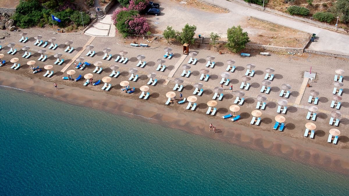 Vlicha, publiczna, wydzielona część hotelowa, piaszczysto-żwirowa, łagodne zejście do morza, wyróżniona certyfikatem Błękitna Flaga, ok. 100 m od hotelu, zejście do plaży schodami lub zjazd kolejką linową, bezpłatne parasole, leżaki, materace i ręczniki; bar.