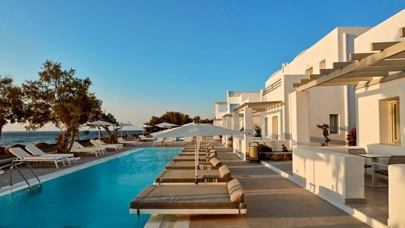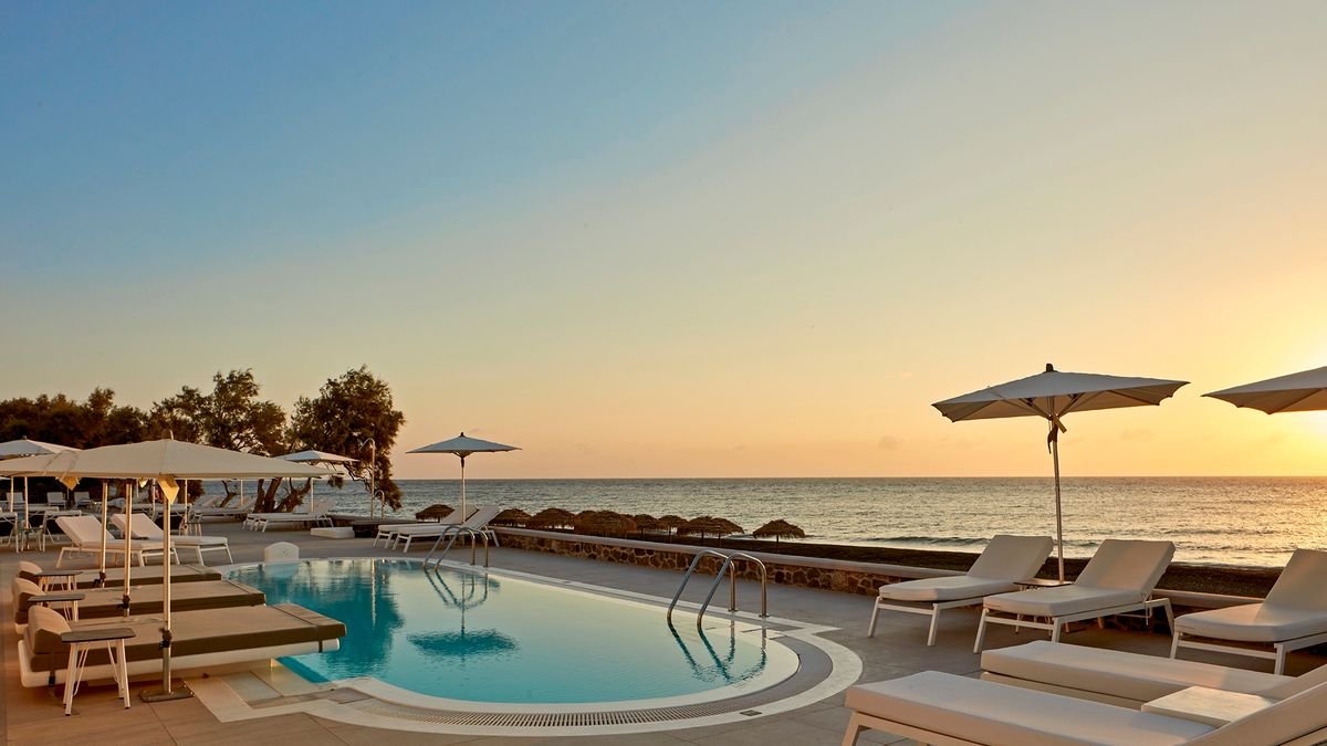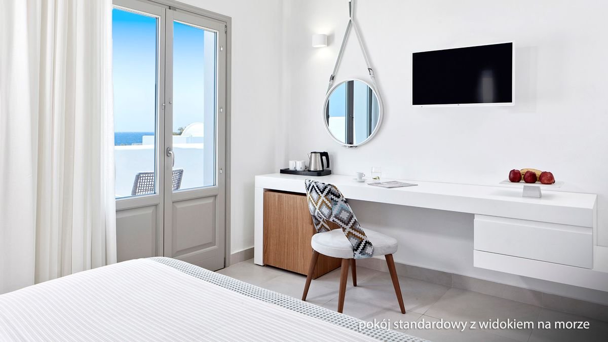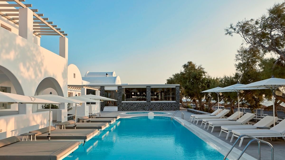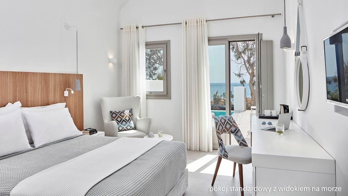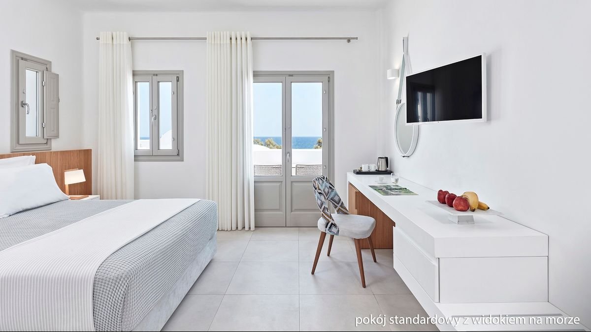 Komfort, luksus i cykladzka gościnność! Położony w popularnym wśród turystów Kamari z fantastyczną ciemną, wulkaniczną plażą jest świetną opcją na niezapomniane greckie wakacje we dwoje lub w gronie przyjaciół. Wygodny pobyt zapewnią nowoczesne, eleganckie pokoje urządzone w jasnych barwach. Idealnym miejscem na relaks w ciągu dnia jest basen z tarasem słonecznym, skąd można podziwiać wspaniały widok na morze. To także świetna baza wypadowa do zwiedzania najciekawszych zakątków wyspy.