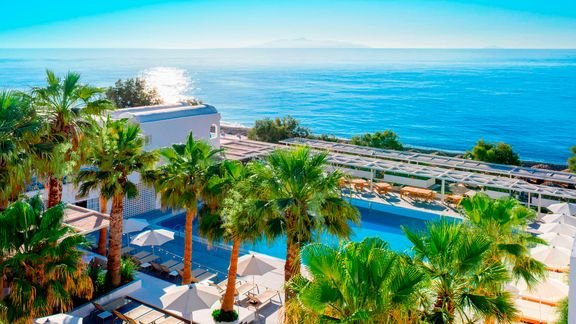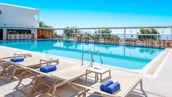 Położony tuż przy plaży, która z pewnością spodoba się miłośnikom spacerów i sportów wodnych, niedaleko centrum Kamari z klimatycznymi tawernami i lokalnymi sklepikami – to doskonały wybór na wypoczynek na pięknej wyspie Santorini! Podczas relaksu przy basenie można podziwiać odprężające widoki na Morze Egejskie, które na długo pozostaną w pamięci. Goście doceniają także miłą, pomocną obsługę i wyjątkową atmosferę – to miejsce z tradycjami, prowadzone rodzinnie od 50 lat.