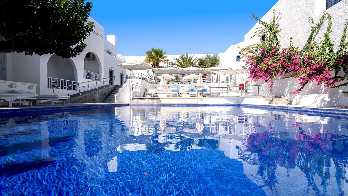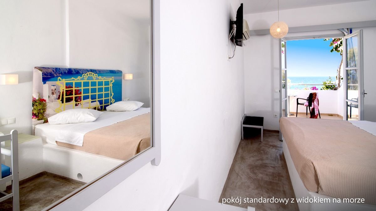 Poczuj magię wakacji na Cykladach i odkryj na czym polega fenomen Santorini, greckiej wyspy przyciągającej jak magnes turystów z całego świata. Położony bezpośrednio przy słynnej czarnej wulkanicznej plaży Kamari i niedaleko centrum miasteczka o tej samej nazwie jest świetną bazą wypadową do zwiedzania wyspy. Utrzymany w lokalnym stylu, komponującym się z otaczającą przyrodą oferuje na miejscu restaurację, basen z barem oraz klimatyzowane, funkcjonalnie urządzone pokoje.