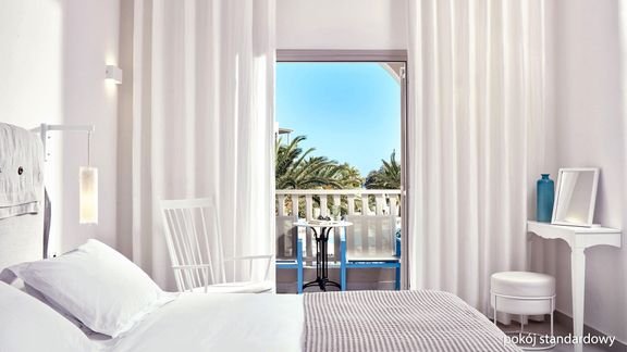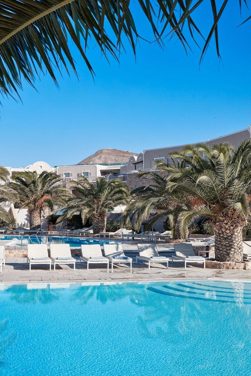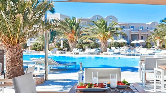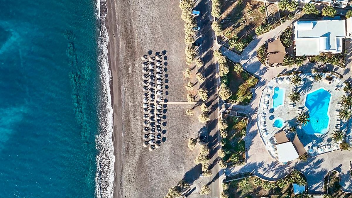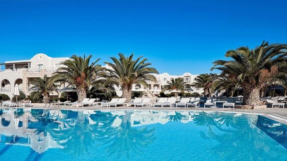 Zaprojektowany w tradycyjnym stylu, zaprasza na wspaniałe greckie wakacje. To idealne miejsce dla wszystkich kochających słońce i morze! Wulkaniczną plażę dzieli od hotelu tylko nadmorska promenada, a na jej prywatnym odcinku Goście mają do dyspozycji bezpłatne parasole i leżaki. Baseny na ładnie zaprojektowanym dziedzińcu to świetna alternatywa dla plaży. Z hotelu niedaleko jest do Perissy, typowego kurortu z mnóstwem restauracji, tawern, barów i majestatyczną skałą Mesa Vouno, dominującą nad plażą. Warto wybrać się także do malowniczego Emporio – wioski, w której zatrzymał się czas.
