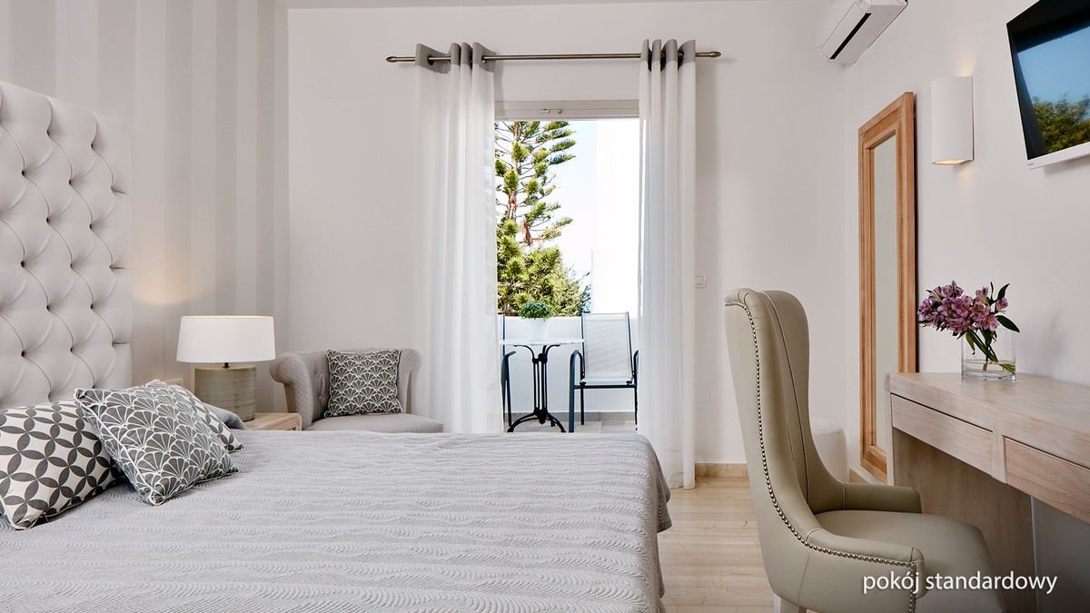 Pierwszy hotel na wyspie, jest idealnym połączeniem pięknej cykladzkiej architektury i nowoczesności. Położony w odległości krótkiego spaceru od centrum Firy – stolicy wyspy, oferuje niezapomniane widoki i pełen komfort wypoczynku. W ciągu dnia zrelaksuj się przy basenie, a wieczorem odpocznij w przestronnych, eleganckich pokojach wyposażonych we wszystkie wygody.