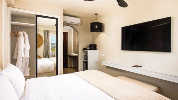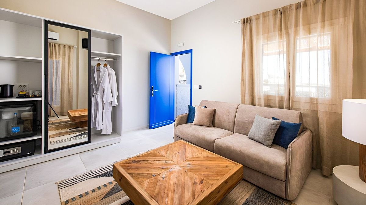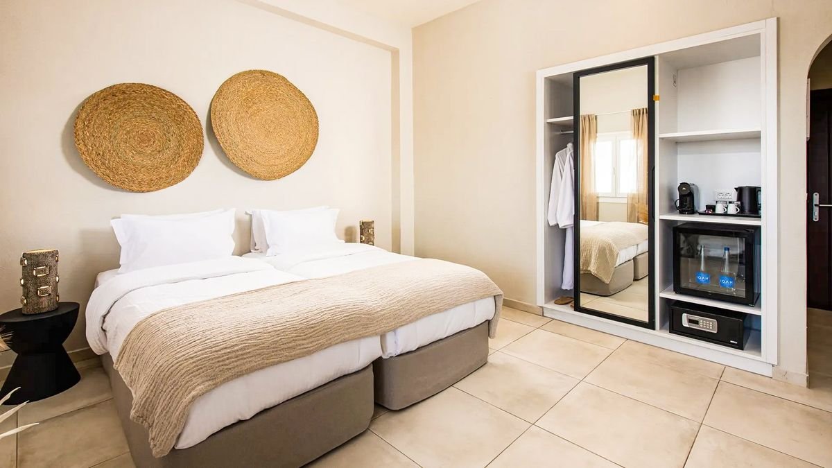 Odkryj kameralny raj przeznaczony wyłącznie dla dorosłych Gości i ciesz się wyjątkowym urlopem na idyllicznej wyspie Santorini! Połączenie tradycyjnej cykladzkiej architektury z ekologicznymi materiałami wykorzystanymi do wystroju wnętrz tworzy przestrzeń, w której luksus łączy się z odpowiedzialnością wobec planety, a każdy zakątek hotelu zachwyca estetyką. To miejsce stworzone z myślą o weganach – hotelowa restauracja i sala śniadaniowa serwują wyłącznie wegańskie dania przygotowywane z lokalnych, ekologicznych produktów, w tym warzyw i owoców o intensywnym smaku, który zawdzięczają bogatą w minerały wulkanicznej glebie wyspy. Przekonaj się, co oznacza prawdziwa grecka gościnność, relaksuj się przy spokojnym basenie, w barze z orzeźwiającymi napojami lub w jasnym, nowoczesnym pokoju wyposażonym we wszystkie wygody i zapamiętaj te wakacje na zawsze!