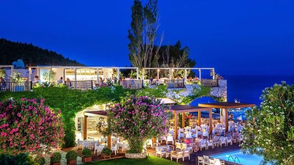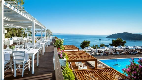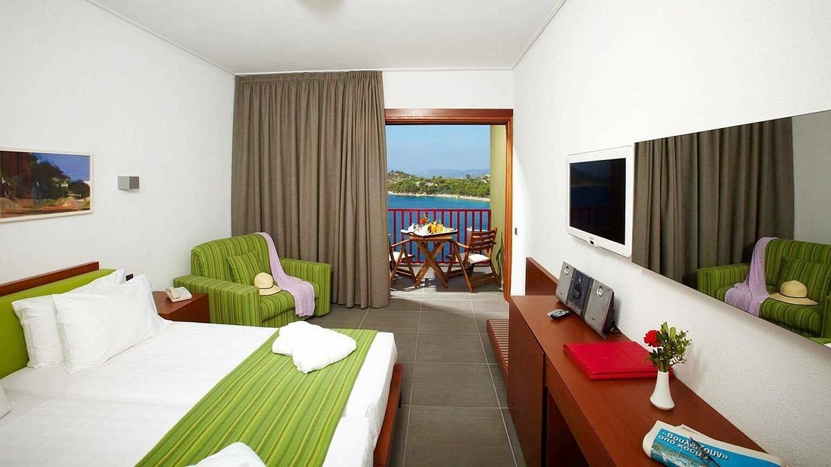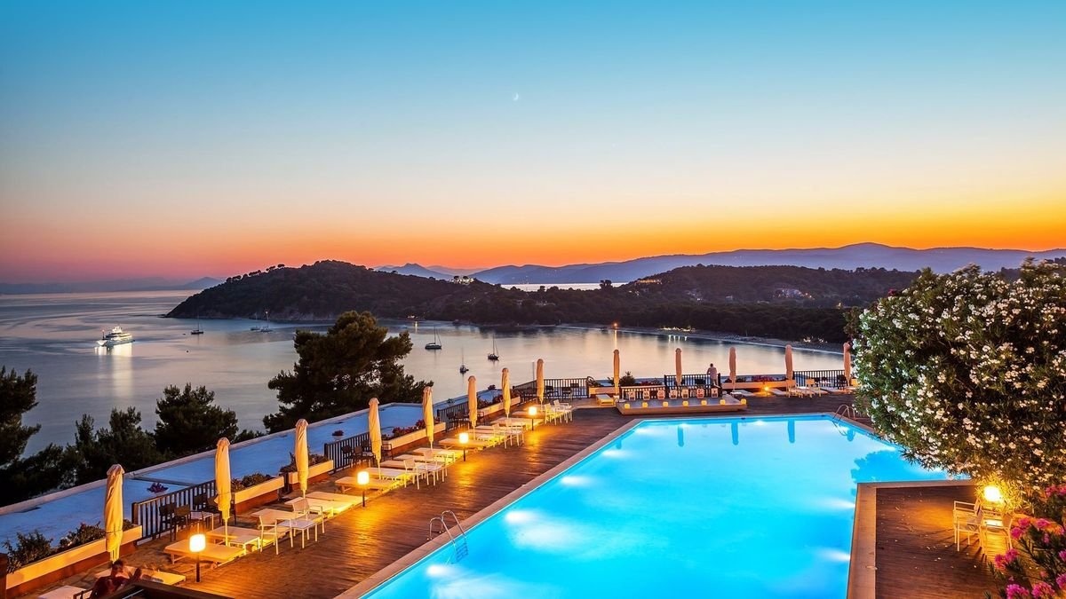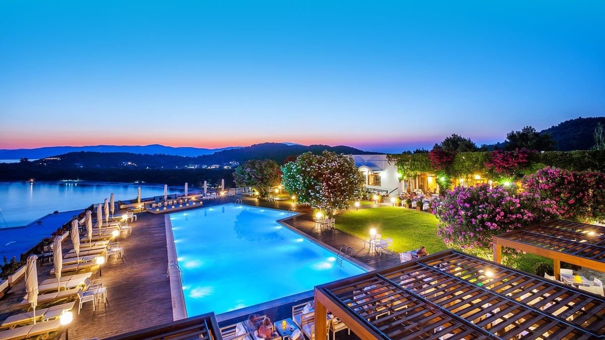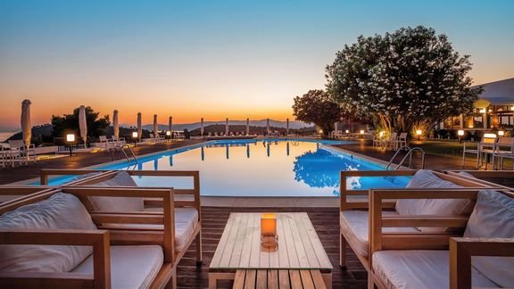 Położony na sosnowym wzgórzu, w południowo-zachodniej części wyspy, zachwyca widokiem na morze, okoliczne wyspy i plażę Koukounaries – jedną z najpiękniejszych w całej Europie! To świetne miejsce na odpoczynek w otoczeniu przyrody i całkowite oderwanie się od codzienności. Jest tu błogo, panuje wesoła, wakacyjna atmosfera, a życie toczy się wokół basenu z tarasem i cudowną panoramą. W hotelu eleganckie wnętrza, wygodne i przestronne pokoje, część z widokiem na morze, 2 restauracje i bary, więc każdy znajdzie tu miejsce dla siebie. Lubisz aktywny wypoczynek? Pograj w tenisa lub uprawiaj sporty wodne, możliwości jest wiele! Do najbliższej plaży dojdziesz w kilka minut spacerem lub wygodnie dojedziesz busem z hotelu, niedaleko stąd również do centrum kurortu ze sklepami i lokalnymi tawernami.