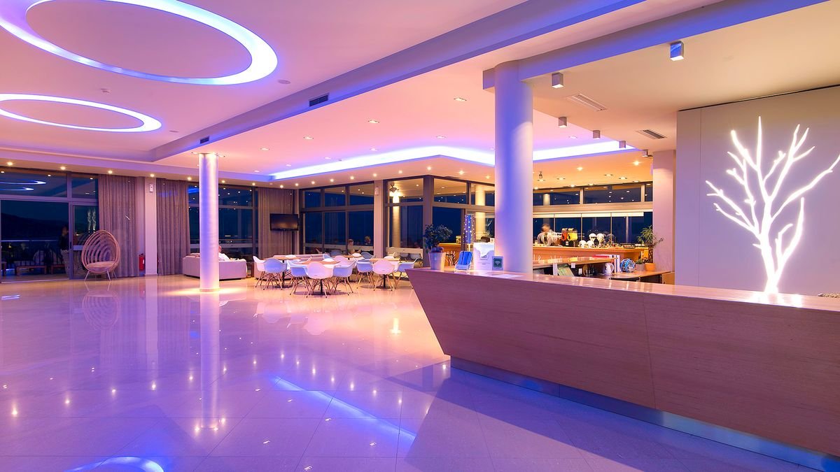 Nowoczesny, jest idealnym miejscem na pełne relaksu greckie wakacje. Położony na wzgórzu z rewelacyjnym widokiem na morze i wybrzeże, spodoba się wielbicielom ciszy i spokoju. Świetnie zaprojektowany basen i taras słoneczny połączony z barem stanowią centrum hotelowego życia. Zadbane pokoje są funkcjonalnie wyposażone, urządzone w jasnych, pastelowych kolorach i gwarantują wygodny wypoczynek.