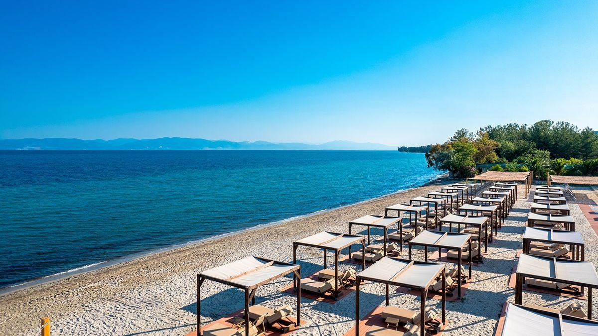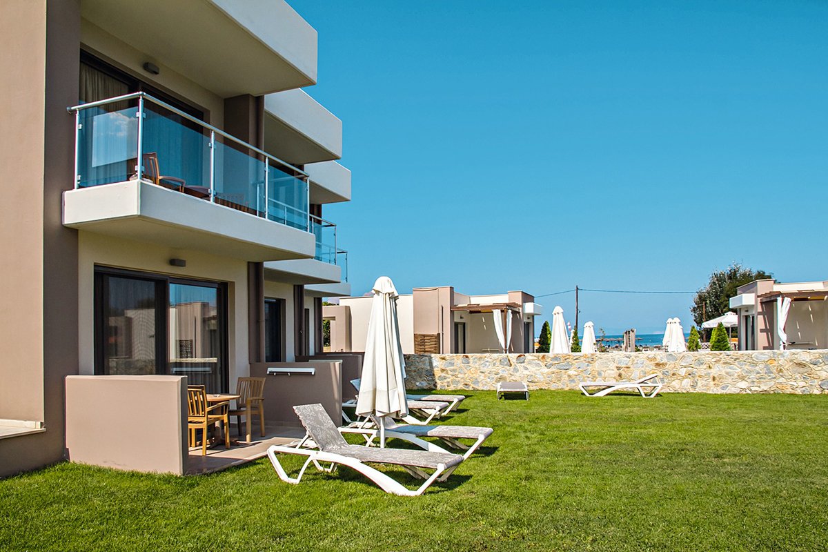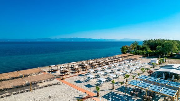 Nowoczesny wystrój w stylu minimalistycznym, eleganckie pokoje, centrum wellness – hotel, który spełni oczekiwania nawet najbardziej wymagających Gości. Niskie, jasne budynki o prostej, estetycznej architekturze położone są na zadbanym terenie, gdzie znajdują się także baseny i brodzik dla dzieci. Hotel leży bezpośrednio przy prywatnej plaży, z bezpłatnymi parasolami i leżakami, która łagodnie schodzi do morza. Gustownie urządzone pokoje są wyposażone we wszystkie wygody.