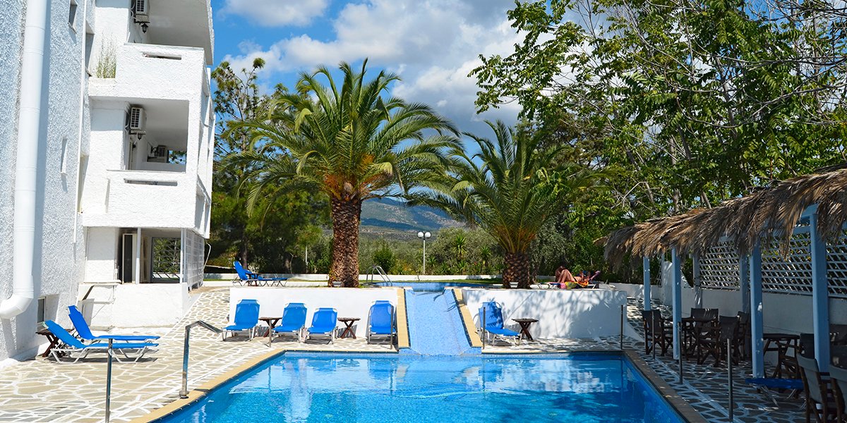 Kameralny, położony w cichej okolicy, a jednocześnie blisko tętniącego życiem centrum wakacyjnej miejscowości Limenaria z licznymi sklepami i tawernami. Otoczony zielenią, oferuje odnowione pokoje, urządzone w jasnych barwach. Na miejscu jest basen, brodzik dla najmłodszych oraz restauracja i bar. Idealne miejsce na spokojny wypoczynek.