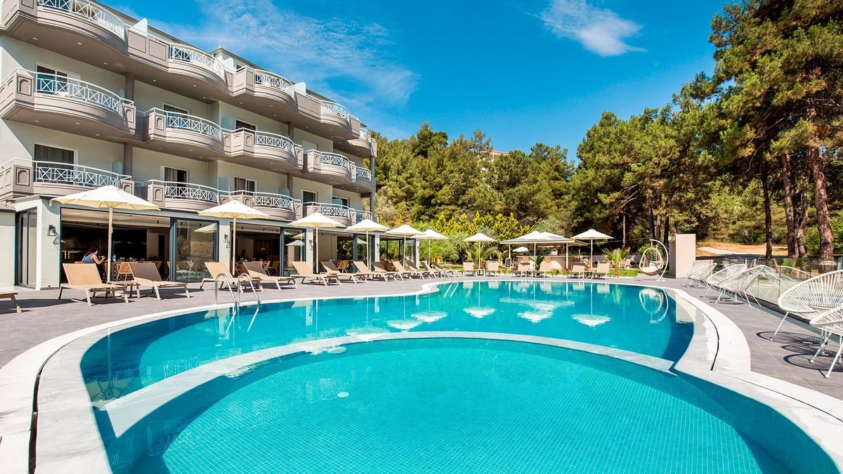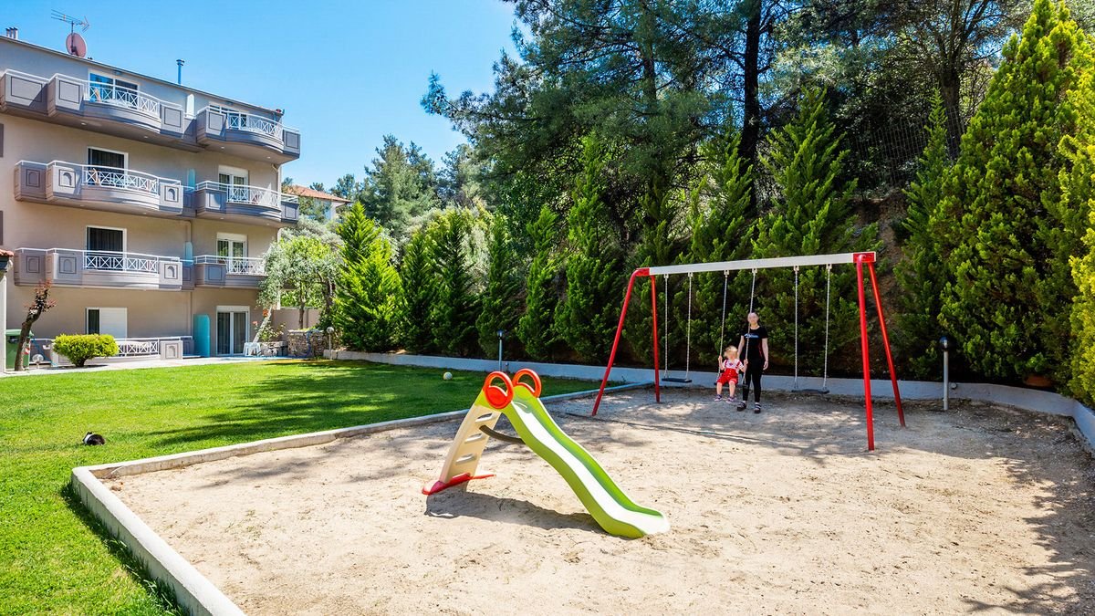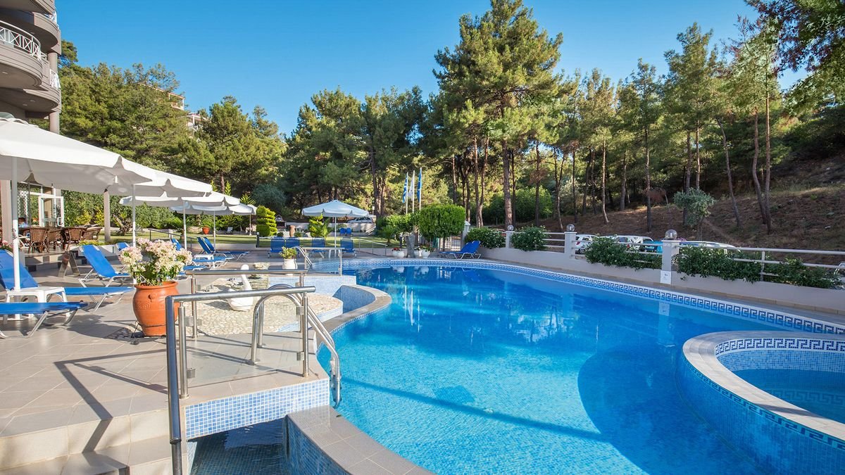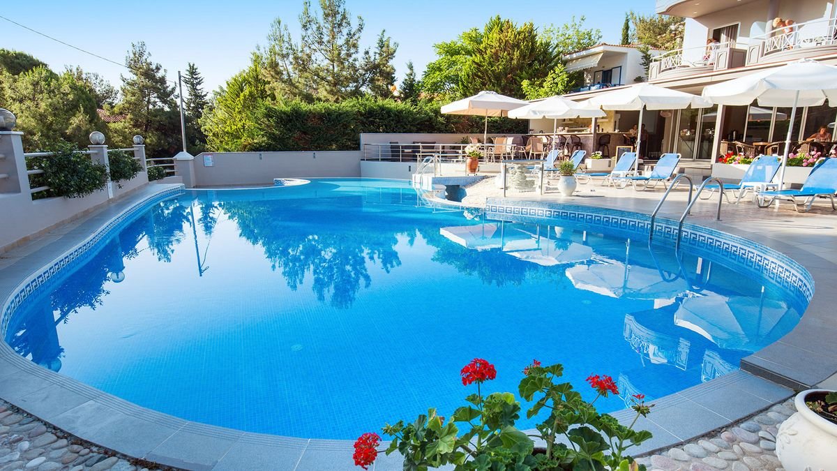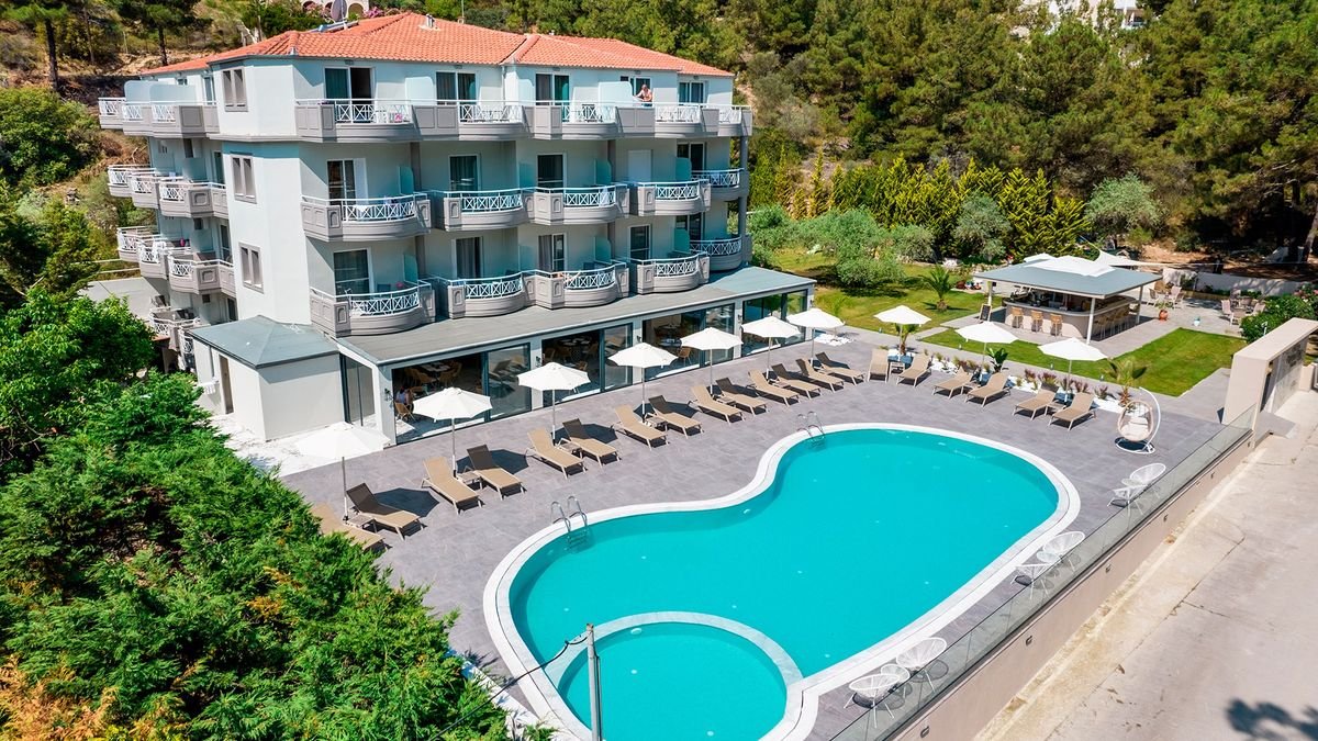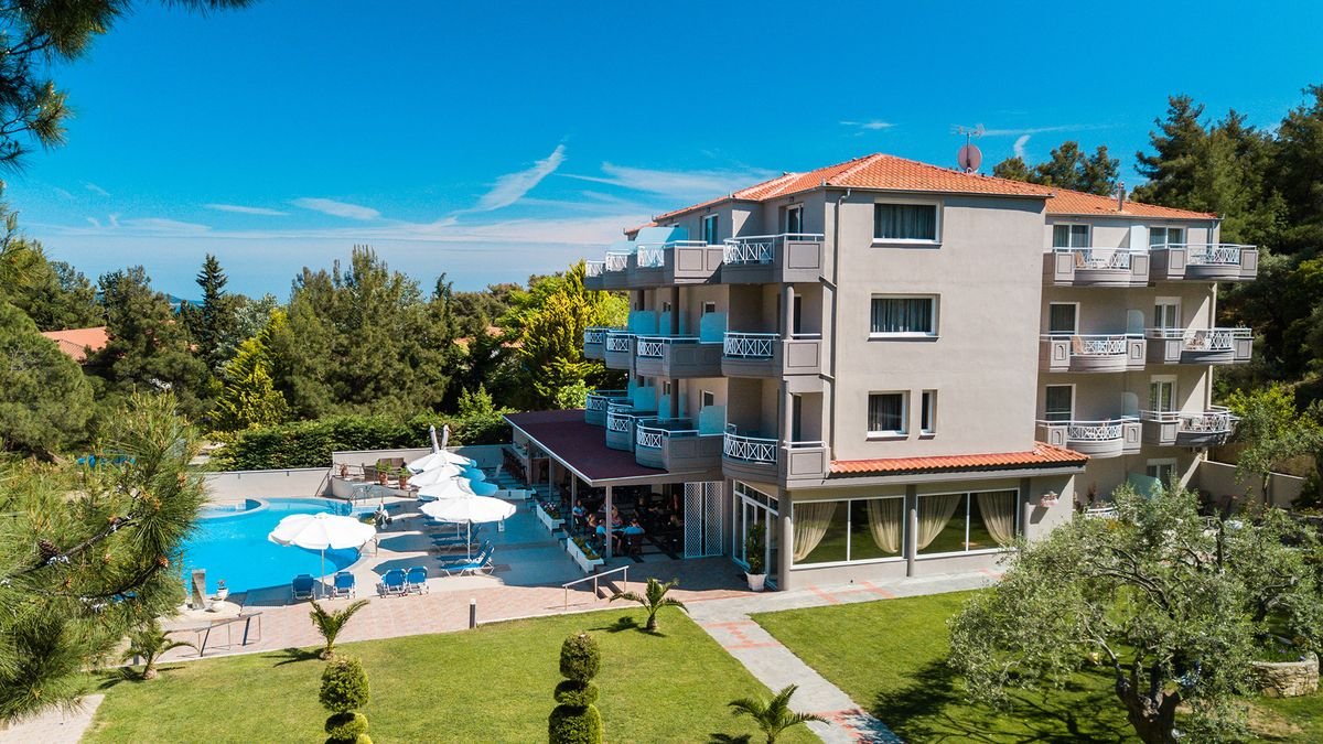 Bardzo popularny i lubiany, nieduży, znakomite miejsce na spokojny wypoczynek. Oferuje komfortowe pokoje, znakomicie nadające się dla rodzin. Malowniczo położony w ogrodzie z piniami i zadbanymi trawnikami, tylko kilka kroków od pięknej plaży Tripiti. Goście doceniają miłą obsługę, rodzinną atmosferę i przepyszną kuchnię w hotelowej tawernie.