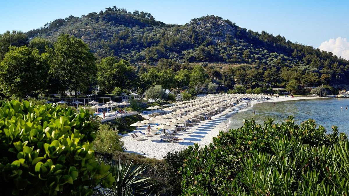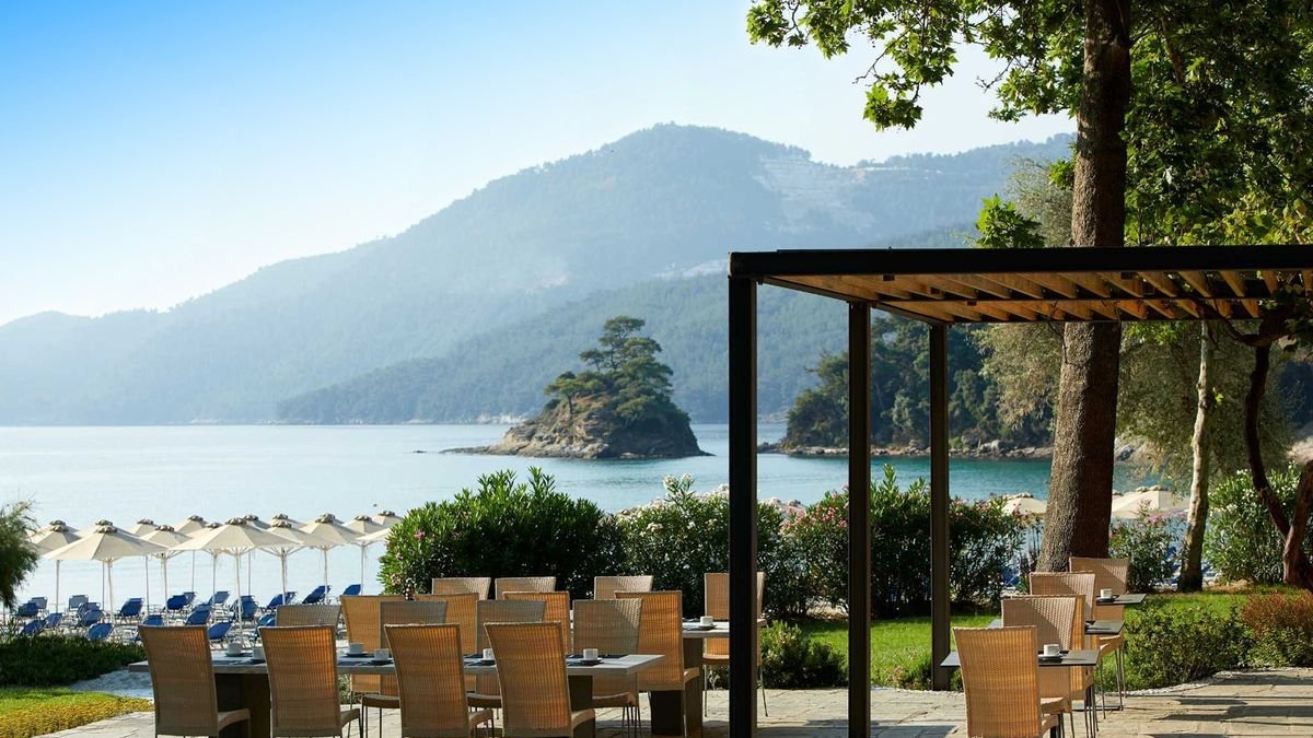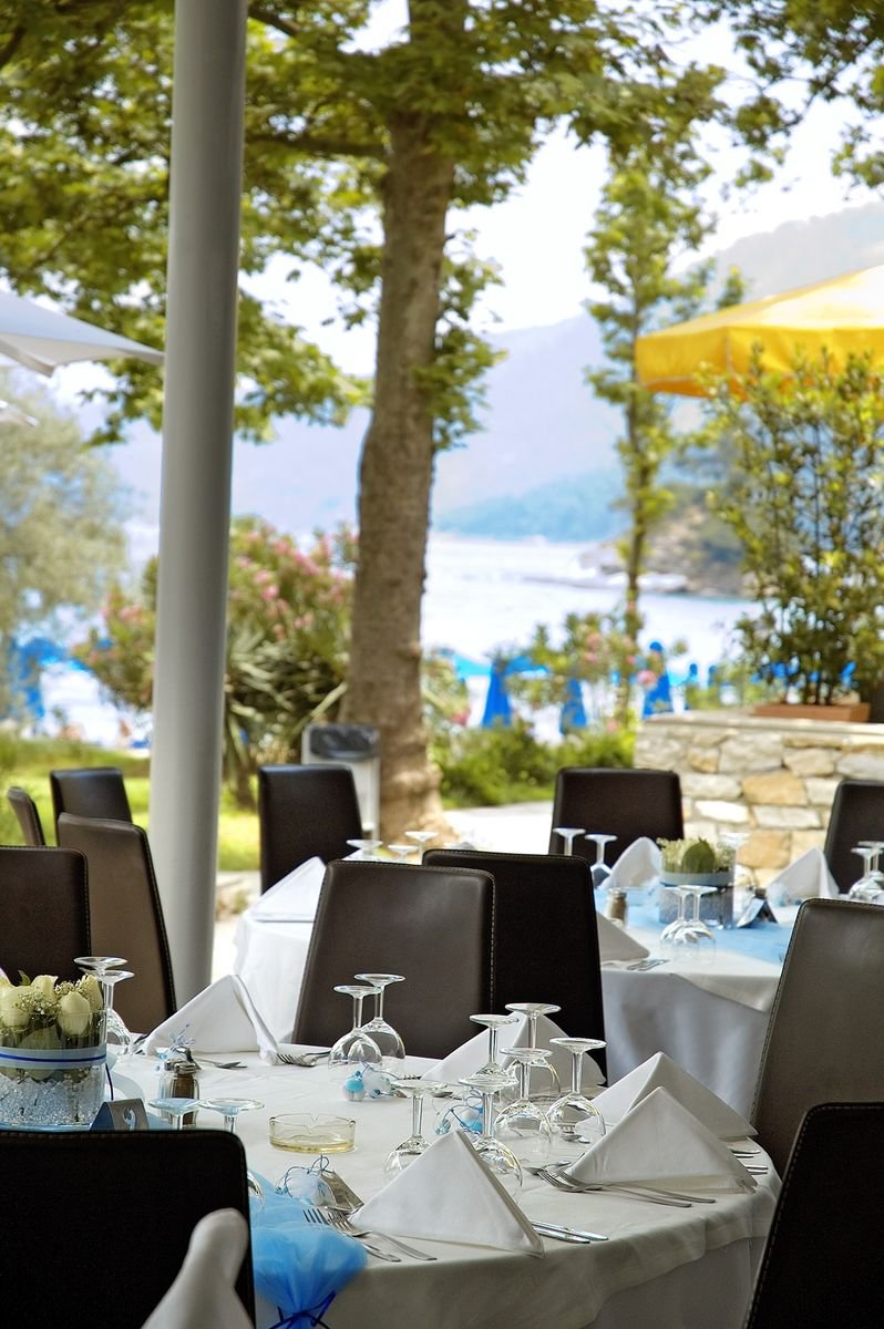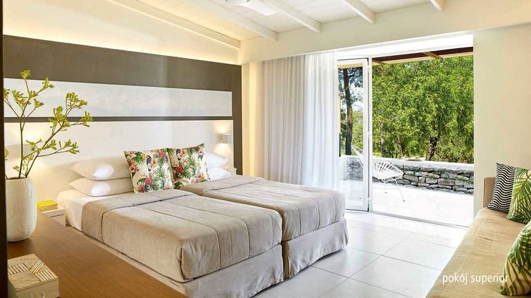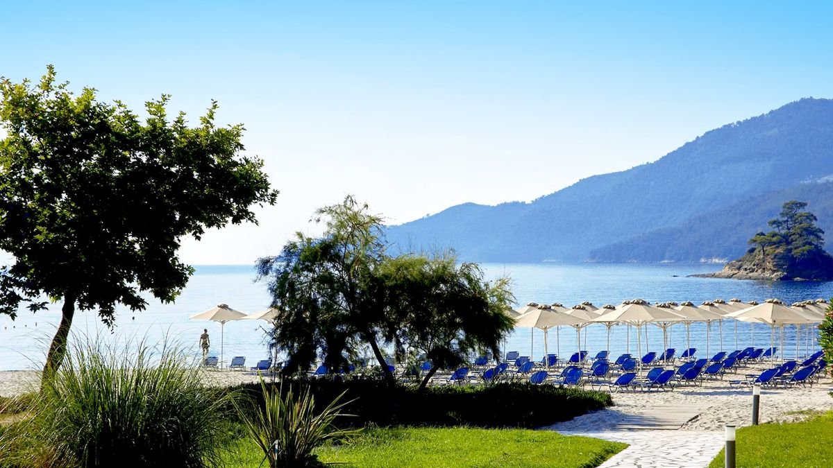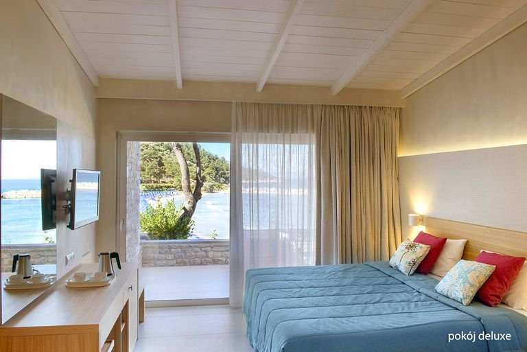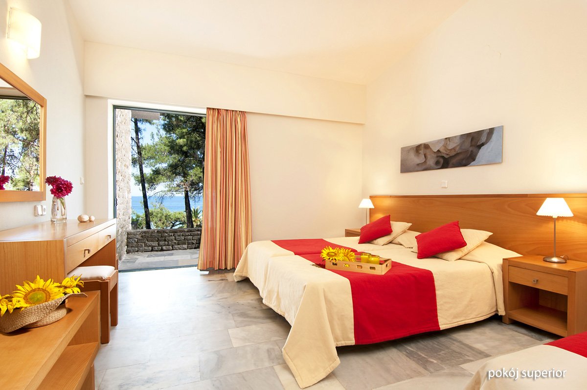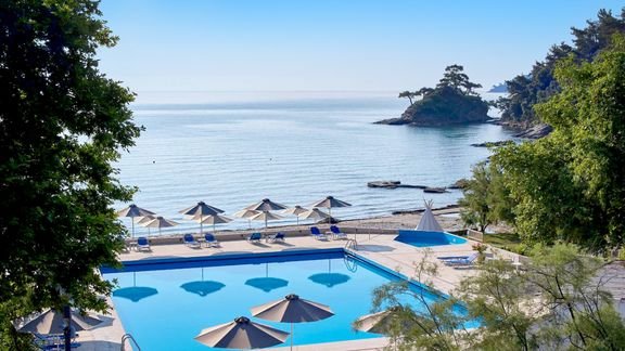 Położony w sosnowym ogrodzie, przy niewielkiej zatoce, w spokojnej okolicy, jednocześnie niedaleko centrum Limenas. Składa się ze stylowych bungalowów z kamienną elewacją i zielonymi tarasami, które pięknie wtapiają się w otoczenie. Na miejscu jest basen i brodzik dla dzieci, 2 restauracje i aż 4 bary, w których nie tylko można napić się drinka, ale również podziwiać zachwycające widoki. Prosto z hotelowego ogrodu można się dostać na piękną, piaszczystą plażę łagodnie opadającą do morza. To idealne miejsce na beztroskie wakacje z rodziną i spokojny wypoczynek w zgodzie z naturą.