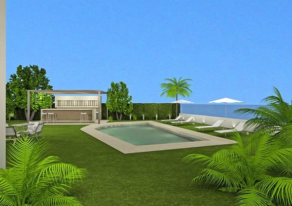 basen, słodka woda, ok. 100 m², gł. 0,8-1,4 m, przy basenie bezpłatne parasole i leżaki.