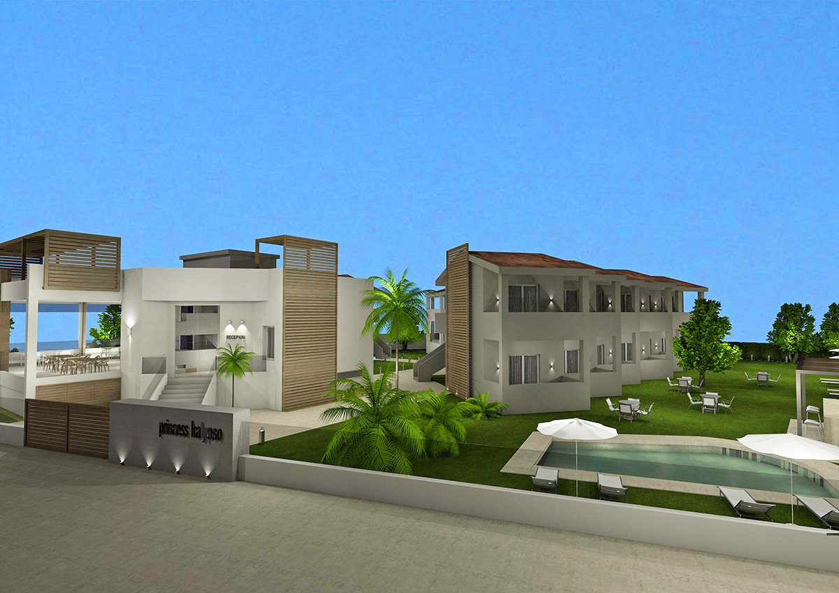 trzygwiazdkowy, zbudowany w 1993 r., hotel w trakcie remontu – planowane zakończenie w kwietniu 2016 r., 20 pokoi, 4 budynki, 1 piętro, hol, całodobowa recepcja, restauracja – dania w formie bufetu, obsługa kelnerska, kuchnia grecka i międzynarodowa, dania wegetariańskie, bar przy basenie, bar na plaży; taras z widokiem na morze i plażę, ogród; bezpłatny internet bezprzewodowy; za opłatą: room-service; akceptowane karty kredytowe: Visa, MasterCard.