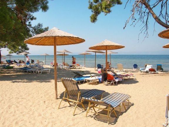 hotelowa, piaszczysta, łagodne zejście do morza, bezpośrednio przy hotelu, bezpłatne parasole i leżaki; Pachis Beach, publiczna, piaszczysta, łagodne zejście do morza, ok. 1 km od hotelu, parasole i leżaki płatne (ok. 2 EUR/szt.), sporty wodne na plaży.
