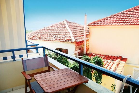dwugwiazdkowy, zbudowany w 2000 r., skromny, zadbany i czysty, 12 pokoi typu studio, część położona od strony ulicy, w dzień dość duże natężenie ruchu; 2 budynki, 2 piętra, możliwość korzystania z grilla na podwórku, taras z widokiem na morze.