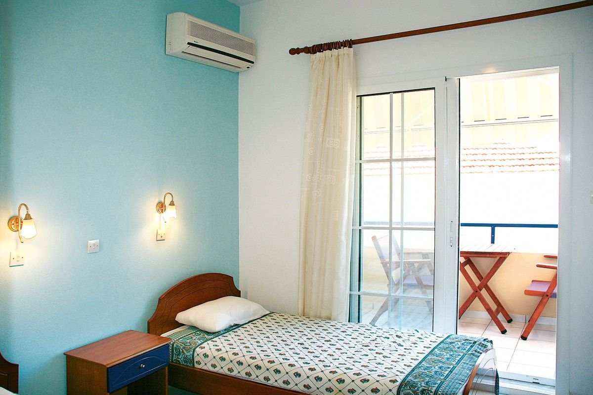 standardowy: 2-os. (możliwość 1 dostawki), ok. 15 m², skromne, zadbane, nowe umeblowanie, indywidualnie sterowana klimatyzacja (5 EUR/dzień), łazienka (prysznic, wc), telewizor, lodówka, sejf (ok. 14 EUR/tydz., ok. 20 EUR/2 tyg.), wyposażony aneks kuchenny; bezpłatne łóżeczko dla dziecka do 2 lat na zamówienie przed przyjazdem; balkon (stolik i krzesełka; suszarka), widok na ulicę; widok na morze za dopłatą.