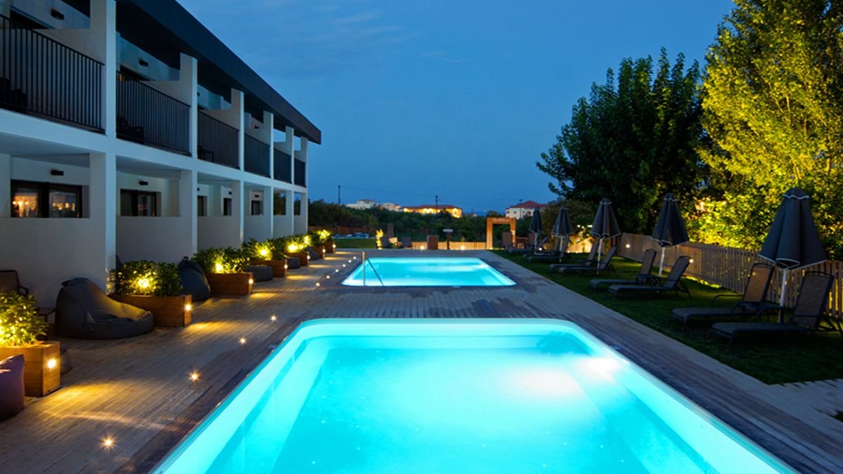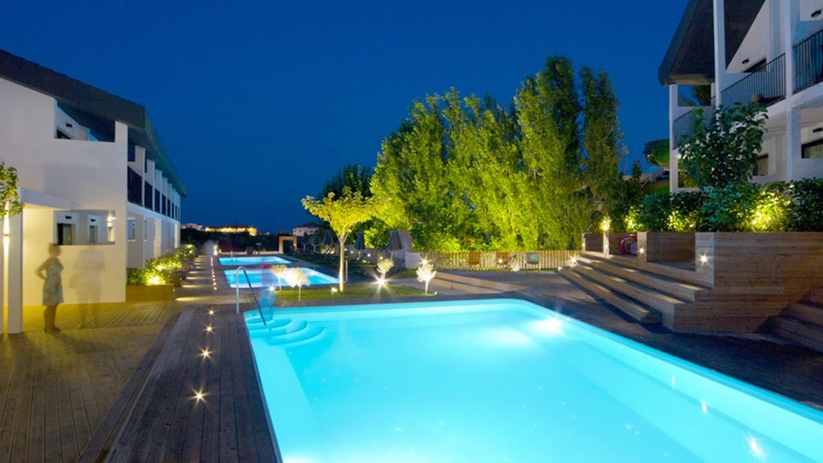 Dizajnerski, malowniczo położony pośród oliwnego ogrodu, blisko centrum słynnego kurortu – Tsilivi. Tylko kilka kroków stąd do plaży, idealnej zarówno do odpoczynku, jak i uprawiania sportów wodnych. Ciekawie zaprojektowany, składa się z kilku budynków w niskiej zabudowie i pięknie zaaranżowanej, stylowej strefy relaksu z drewnianymi tarasami i miejscami do opalania oraz basenami, zapraszającymi do schłodzenia się w upalny dzień. W sąsiedztwie prawdziwy hit – Tsilivi Waterpark z mnóstwem atrakcji dla całej rodziny i bezpłatnym wstępem dla Gości hotelu!