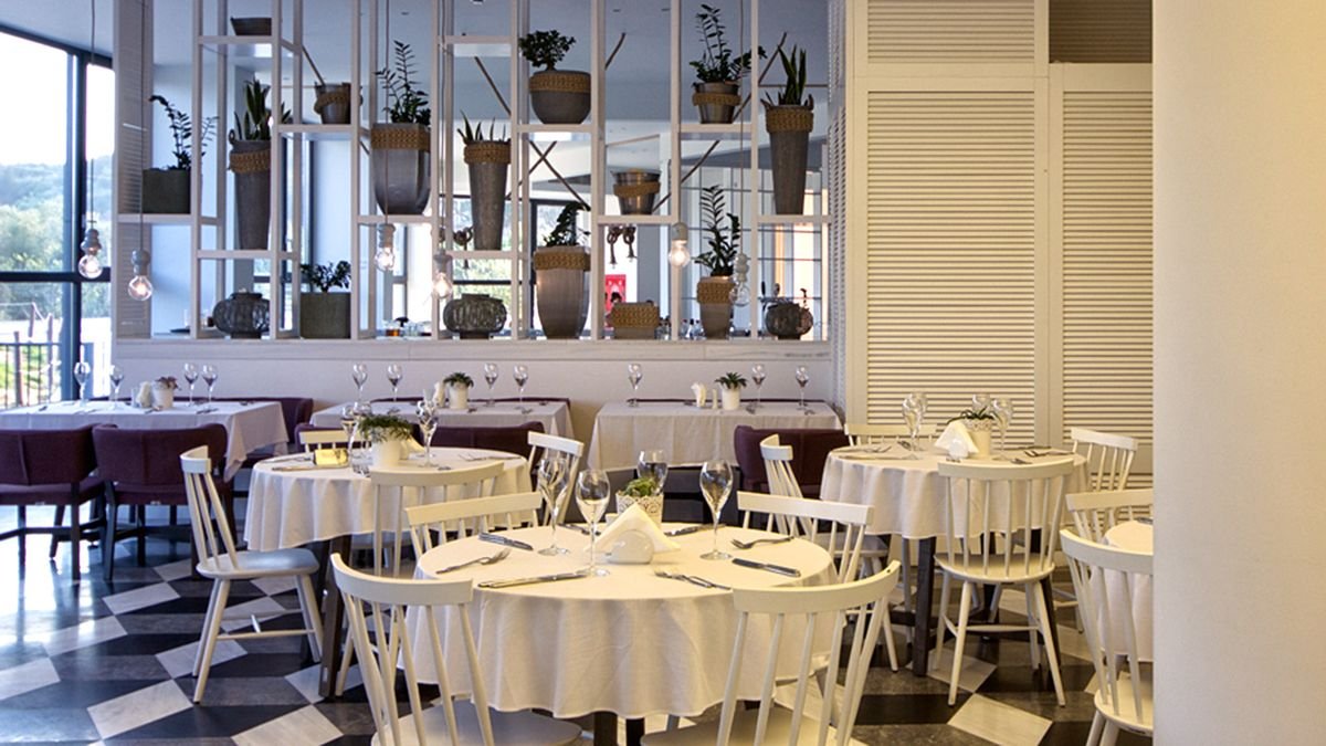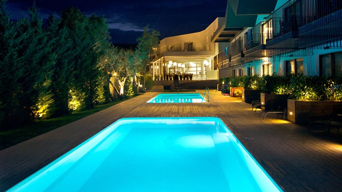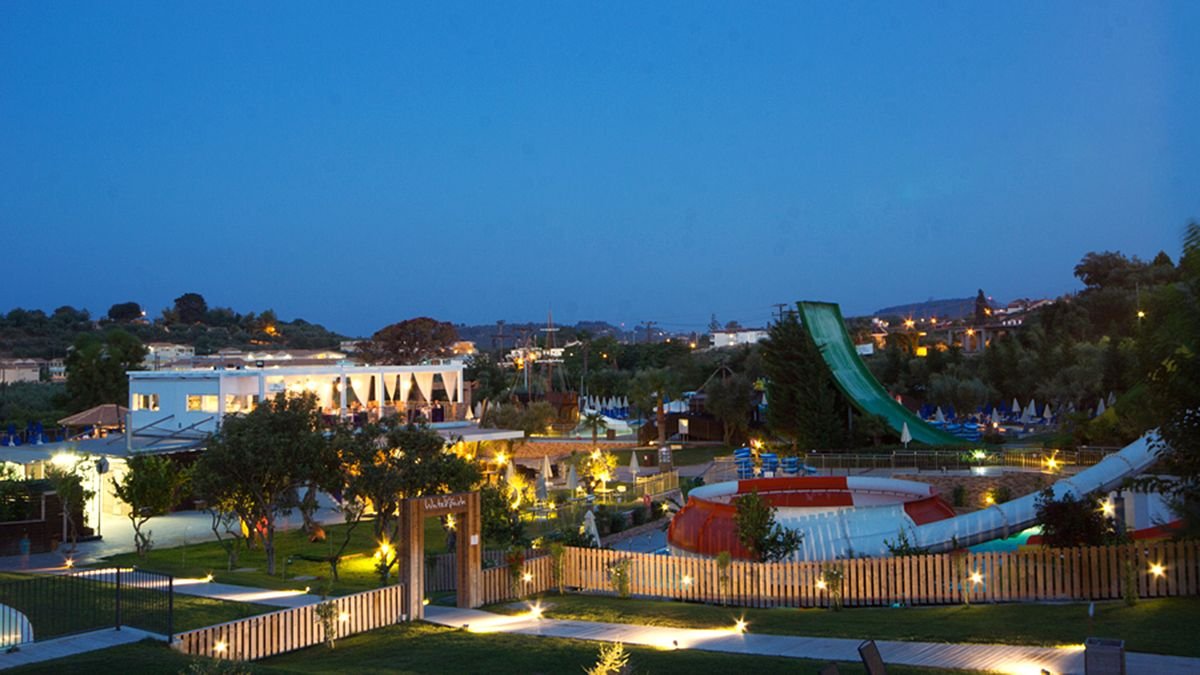 pięciogwiazdkowy, nowoczesny, wybudowany w 2013 r., 6 budynków w niskiej zabudowie, 1 piętro, 6 wind, przestronne lobby, całodobowa recepcja, restauracja Helios – dania w formie bufetu, kuchnia międzynarodowa, dostępne foteliki i menu dla dzieci, dania wegetariańskie, restauracja w aquaparku (płatna; wymagana wcześniejsza rezerwacja) – à la carte, kuchnia międzynarodowa, 2 bary, w tym bar przy basenie; taras, ogród oliwny, bezpłatny internet bezprzewodowy w miejscach ogólnodostępnych; za opłatą: fryzjer, pralnia, room-service 24h; akceptowane karty kredytowe: Visa, MasterCard i American Express.