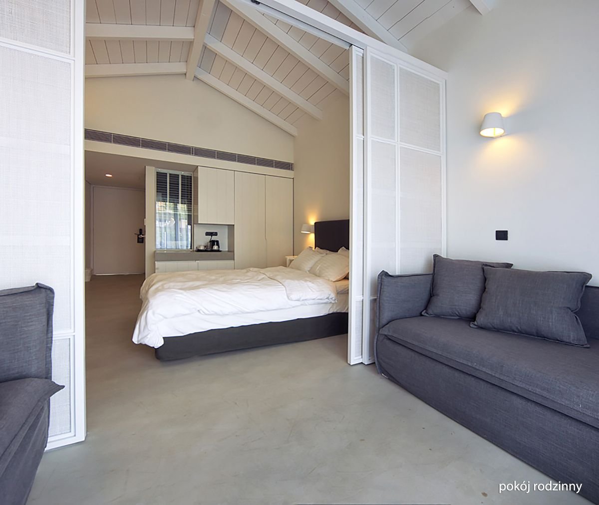 standardowy: 2-os. (możliwość 1 dostawki dla dziecka), nowoczesny, ok. 30 m2, indywidualnie sterowana klimatyzacja, łazienka (wanna lub prysznic, wc; suszarka, szlafrok i kapcie), internet bezprzewodowy, telewizja satelitarna, telefon, lodówka, zestaw do kawy/herbaty (na zamówienie), sejf; bezpłatne łóżeczko dla dziecka do 2 lat; balkon lub taras (stolik i krzesełka). ; rodzinny: 3-os. (możliwość 1 dostawki), ok. 35 m2, wyposażenie jak w pokoju standardowym.