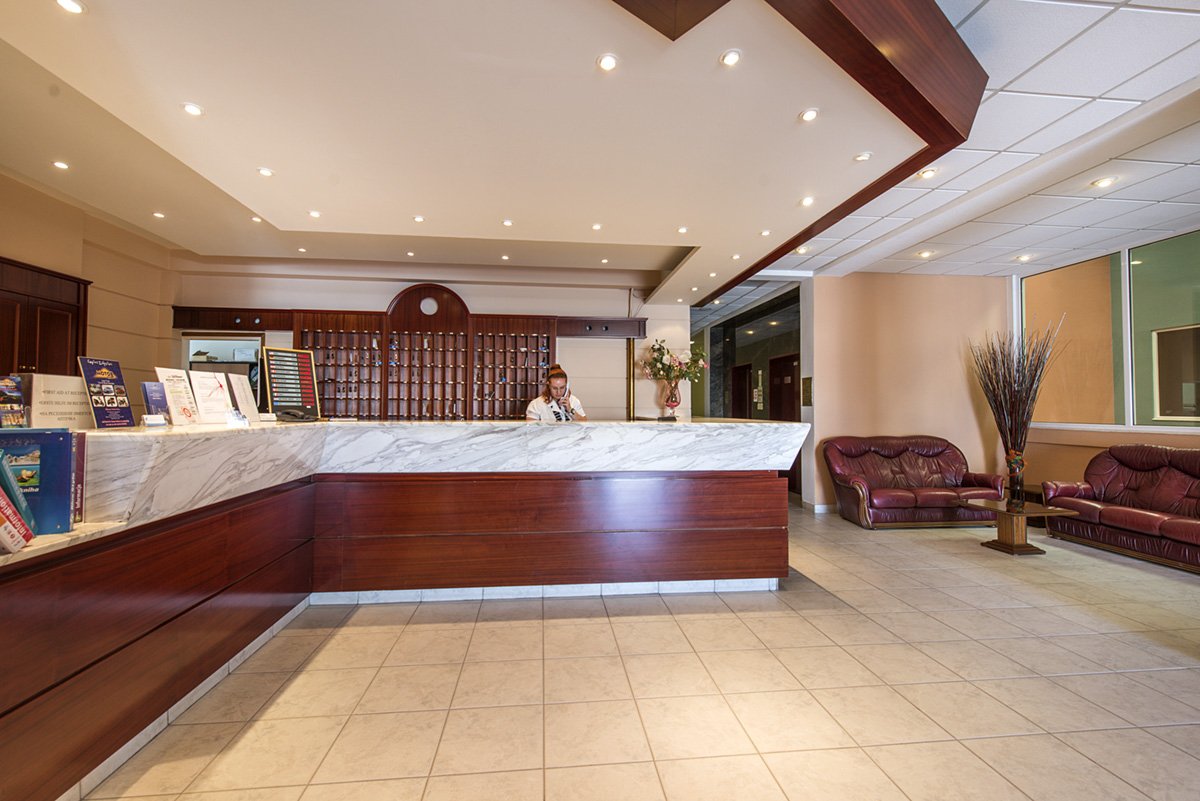 czterogwiazdkowy, zbudowany w 1998 r., 118 pokoi, 2 budynki, 2 piętra, 2 windy, przestronny hol, całodobowa recepcja, restauracja główna - dania w formie bufetu, kuchnia międzynarodowa, dostępne foteliki dla dzieci, snack bar w Hotelu Astir Beach, kącik telewizyjny; sala konferencyjna dla 200 osób; za opłatą: internet bezprzewodowy w lobby (ok. 1 EUR/godz.), punkt internetowy (ok. 5 EUR/godz.), sejf (ok. 3 EUR/dzień); akceptowane karty kredytowe: Visa, Mastercard, American Expres.