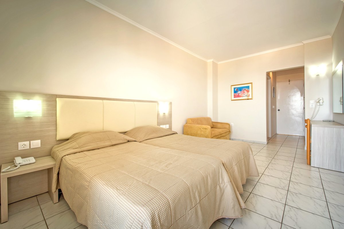 standardowy: 2-os. (możliwość 1 dostawki), ok. 20 m², indywidualnie sterowana klimatyzacja, łazienka (wanna lub prysznic, wc), telewizja satelitarna, lodówka, sejf (płatny: ok. 10 EUR/tydz.); bezpłatne łóżeczko dla dziecka do 2 lat na zamówienie przed przyjazdem; balkon (stolik i krzesełka), widok na ogród lub basen.