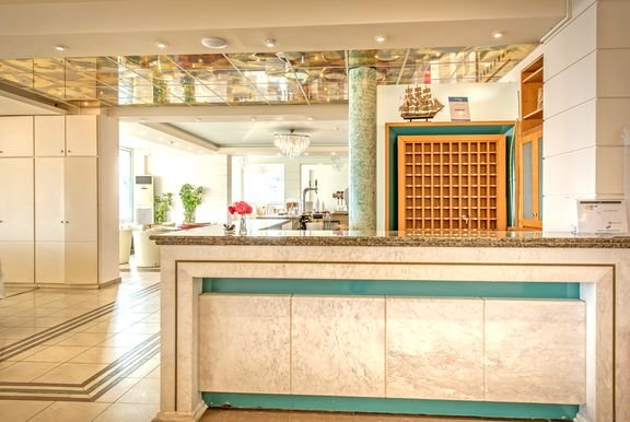 trzygwiazdkowy, zbudowany w 1981 r., odnowiony w 2014 r., 77 pokoi, 2 budynki, 2 piętra, winda, lobby, całodobowa recepcja, restauracja – dania w formie bufetu, kuchnia międzynarodowa, dostępne foteliki i menu dla dzieci, dania wegetariańskie, bar; przechowalnia bagażu, kantor; taras z widokiem na morze, bezpłatny internet bezprzewodowy w miejscach ogólnodostępnych; występują różnice poziomów – nie jest polecany osobom z ograniczeniami ruchowymi; za opłatą: pralnia; akceptowane karty kredytowe: Visa, MasterCard.