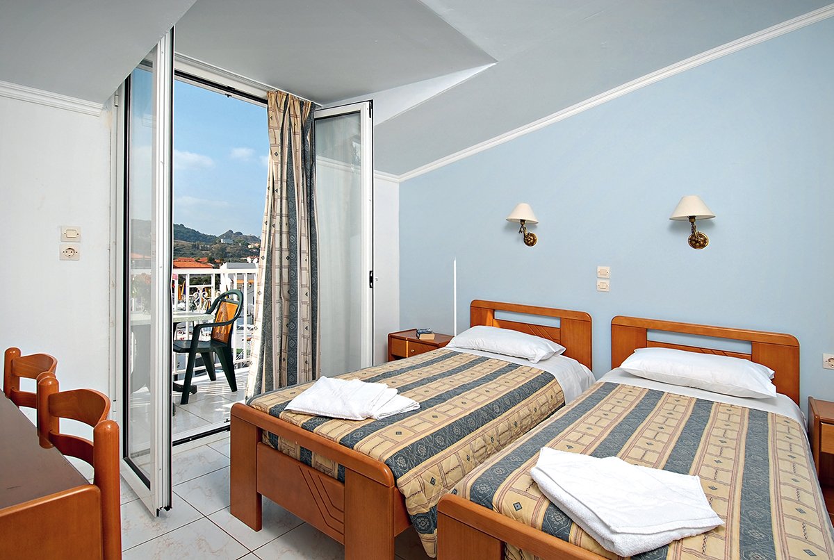 standardowy: 2-os. (możliwość 1 dostawki - sofa), skromny, ok. 22 m², indywidualnie sterowana klimatyzacja, łazienka (wanna lub prysznic, wc; suszarka), internet bezprzewodowy, telewizja satelitarna, lodówka; za opłatą: sejf (ok. 10 EUR/tydz.); bezpłatne łóżeczko dla dziecka do 2 lat na zamówienie przed przyjazdem; balkon (stolik i krzesełka).