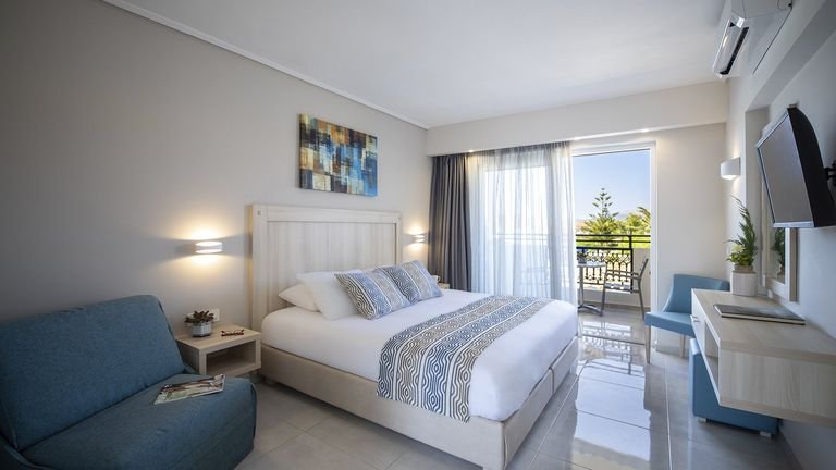 Wyjątkowe wakacje w jednym z najpiękniejszych zakątków Grecji! Zarówno Ty, jak i Twoje pociechy, będziecie zachwyceni tym miejscem – dzieciaki będą szaleć na wodnym palcu zabaw, podczas gdy Ty… zaznasz prawdziwego relaksu w basenie dedykowanym wyłącznie dorosłym! Blisko stąd do plaży, jak i centrum Kalamaki, a sam hotel położony jest w cichej, spokojnej okolicy – idealnie na naładowanie baterii! Możesz liczyć na wspaniałe wakacje z rodziną, wzbogacone we wspólne chwile podczas zabaw czy wycieczek po wyspie – to wszystko sprawi, że Wasz pobyt stanie się niezapomnianym doświadczeniem.