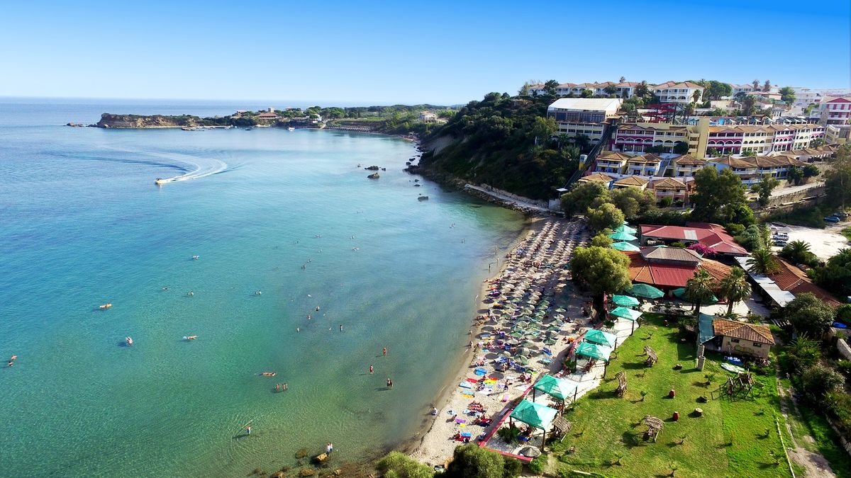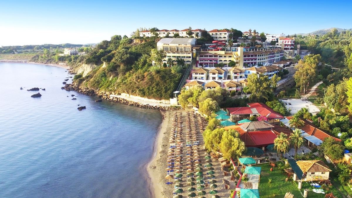 Pieknie położony na wzgórzu z widokiem na malowniczy półwysep Vassilikos. Tutaj Goście mogą odpocząć od zgiełku, ciesząc się spokojem i wspaniałym, greckim słońcem. Kilka kroków od hotelu piaszczysta plaża oblewana delikatnie przez morze, a obok dwa siostrzane hotele, które mają do zaoferowania cały szereg atrakcji. Warto wybrać się do pobliskiego centrum Vassilikos i na nieco dłuższą wycieczkę do stolicy wyspy Zakynthos o tej samej nazwie.